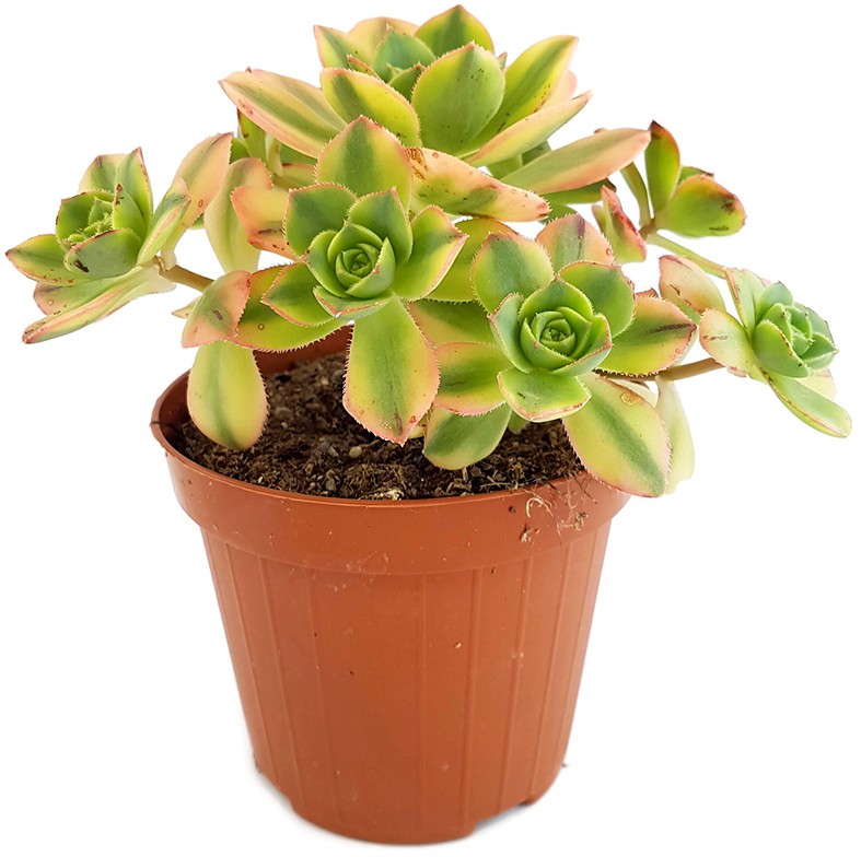 ✔ Sie erhalten Ihr buntes Aeonium sicher verpackt in der ausgewählten Größe.