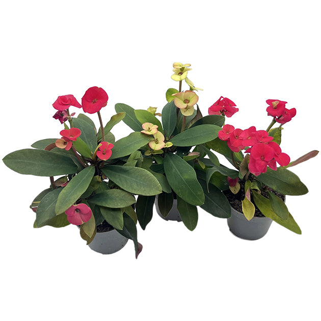 Erleben Sie mit dem Euphorbia milii 3er-Set eine harmonische Kombination aus pflegeleichter Schönheit und langanhaltender Blütenpracht – perfekt für Ihr Zuhause oder als Geschenk für Pflanzenliebhaber!
