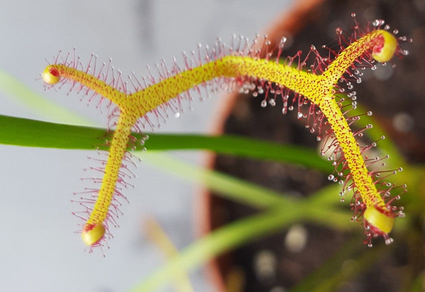 Diese robuste Karnivore liebt Sonnenlicht und gedeiht am besten an einem sonnigen Platz. Drosera Binata ist eine pflegeleichte und gleichzeitig außergewöhnliche Wahl für Pflanzenliebhaber, die etwas Einzigartiges suchen. Verleihen Sie Ihrem Garten oder Ihrer Wohnung einen exotischen Touch mit dieser faszinierenden fleischfressenden Pflanze.