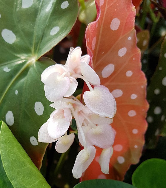 Die Polka-Dot Begonia ist eine Rarität aus Brasilien und mag es gern das ganze Jahr über warm. Während des Wachstums im Sommer bei ca. 20°C feucht halten und ausreichend düngen. Im Winter nicht unter 15 Grad halten. Die Pflanze sollte immer eine gewisse Grundfeuchte haben, lassen Sie hierfür ein klein wenig Wasser im Untersetzer stehen, aber gerade nur soviel, dass Sie Staunässe vermeiden.