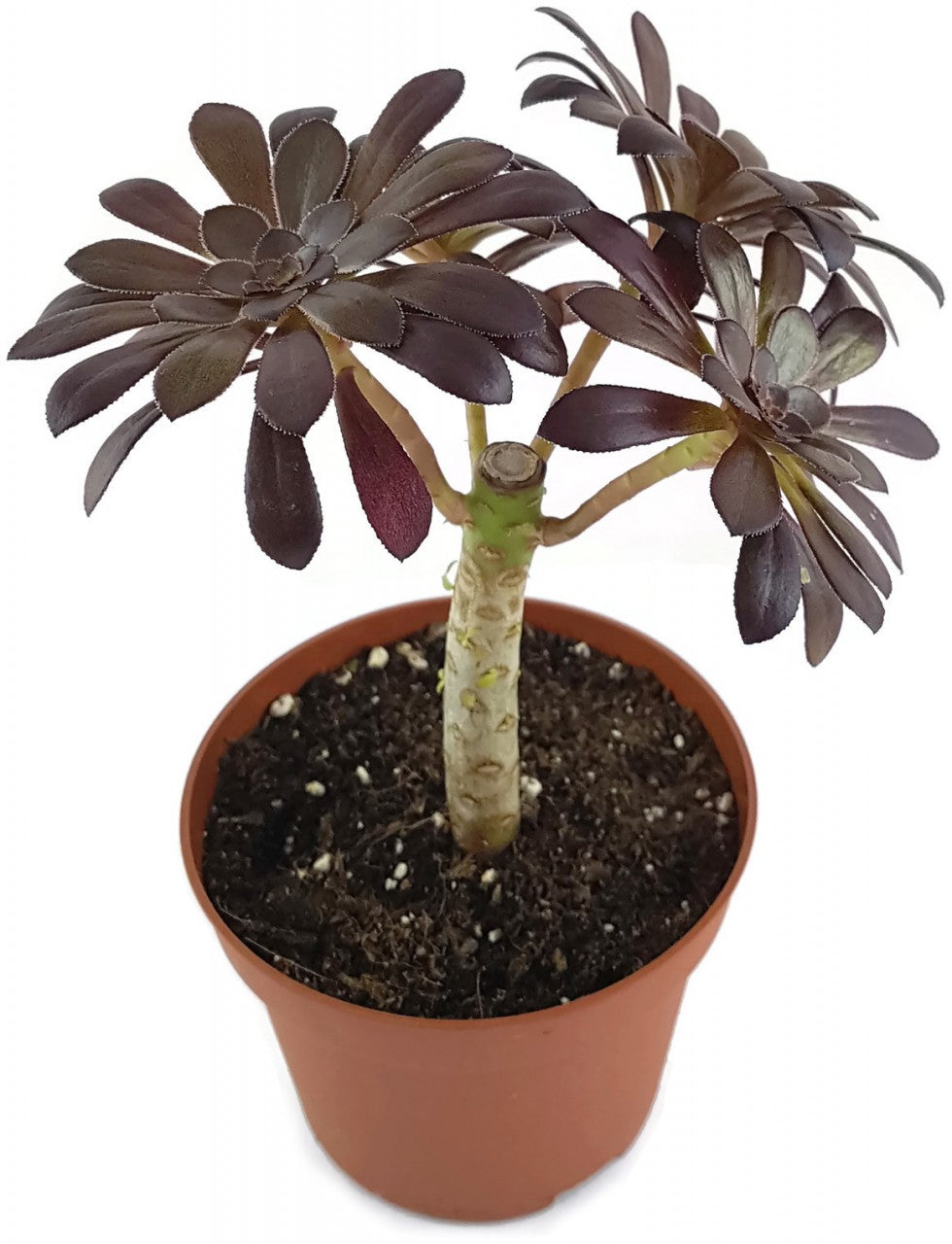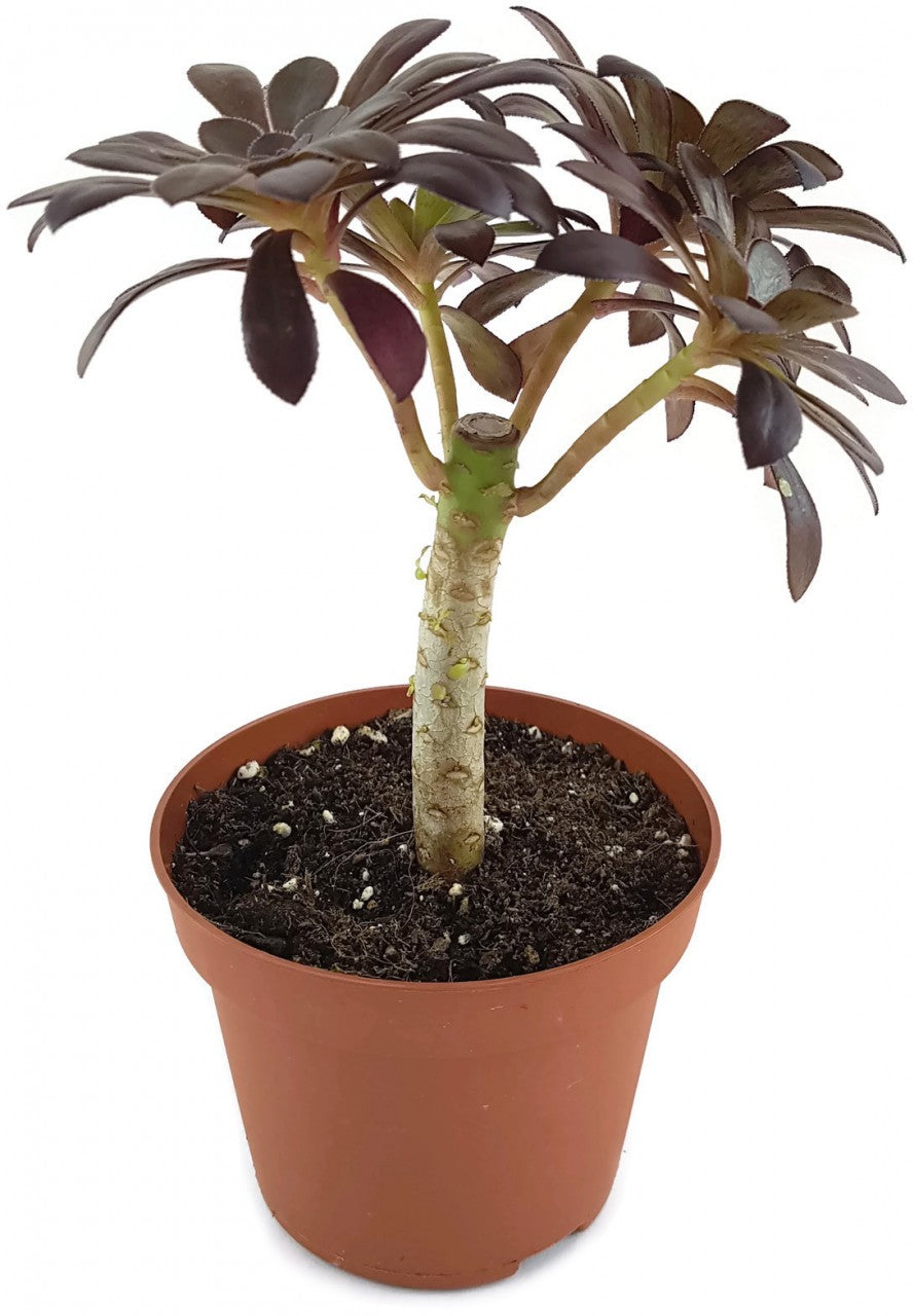 ✔ Freuen Sie sich über den exotischen Flair, den das Aeonium arboreum var. atropurpureum auf Ihrem sonnigen Fensterbrett zu Ihnen nach Hause trägt.