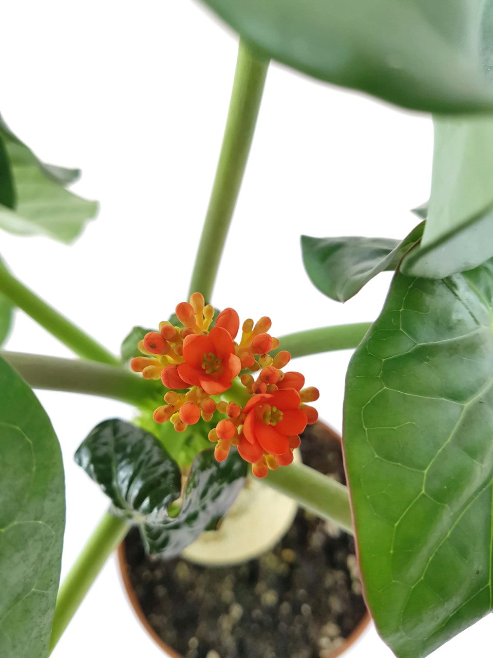 Genießen Sie die außergewöhnliche Schönheit und Exotik der Jatropha podagrica! Verleihen Sie Ihrem Zuhause mit dieser einzigartigen Zimmerpflanze einen Hauch von Eleganz und Stil.