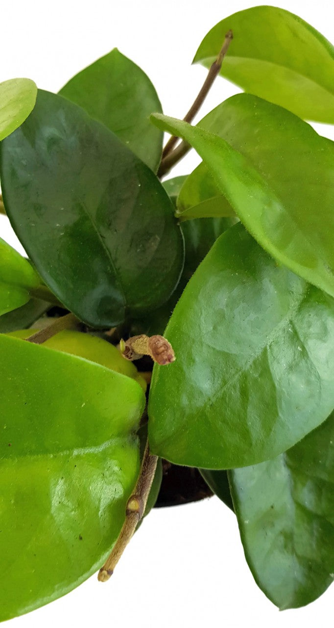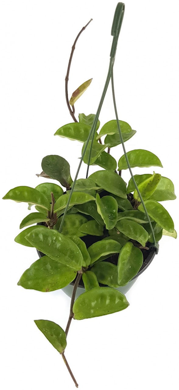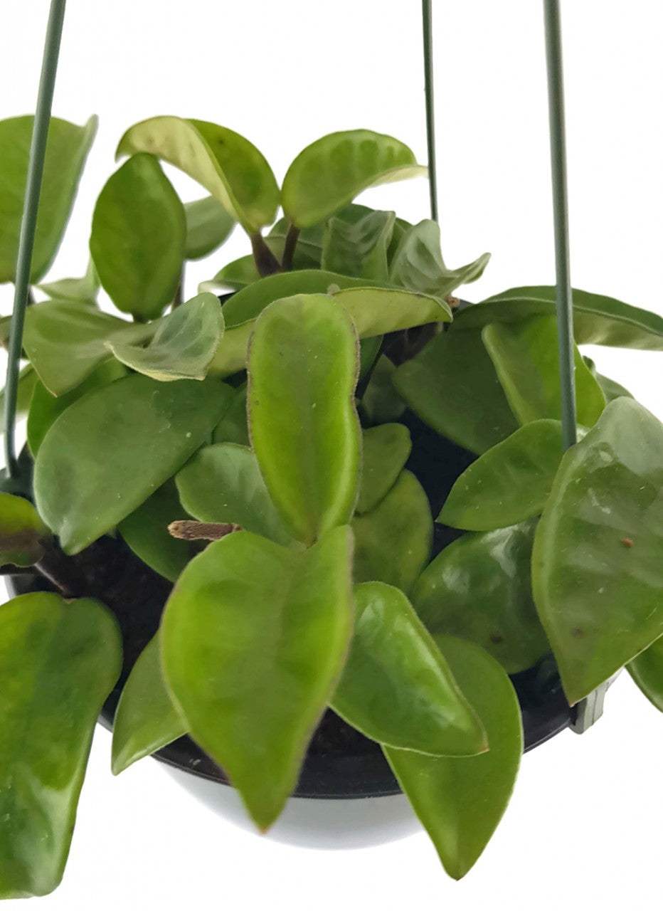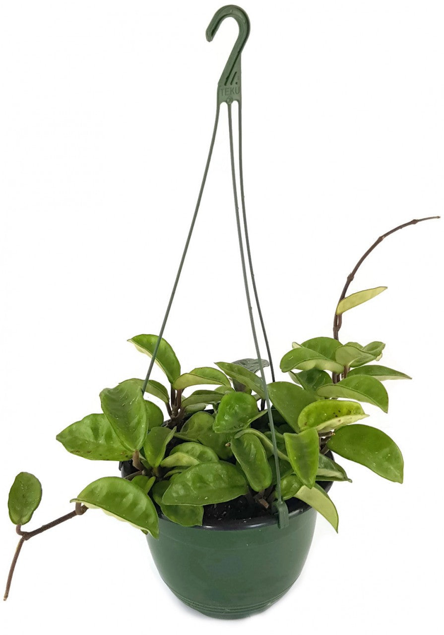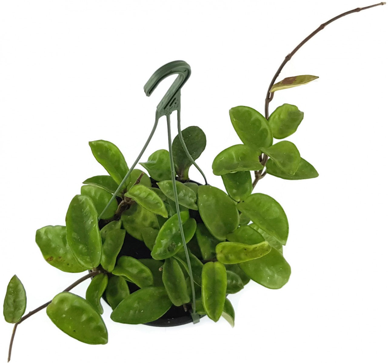 Die Hoya carnosa "Krinkle 8" ist eine pflegeleichte Zimmerpflanze, die im Sommer an langen Ranken Blütendolden ausbildet. Die vielen Blüten der Dolde erinnern an zartes Porzellan, daher stammt ihr Zweitname Porzellanblume.