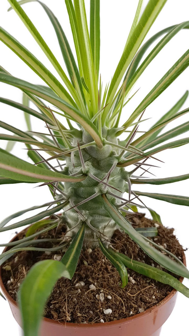 Ähnlich dem bekannten Pachypodium lamerei, kann diese Madagaskarpalme eine stattliche Höhe von über 6 Metern erreichen und wird zweifellos zum beeindruckenden Blickfang in Ihrem Zuhause.