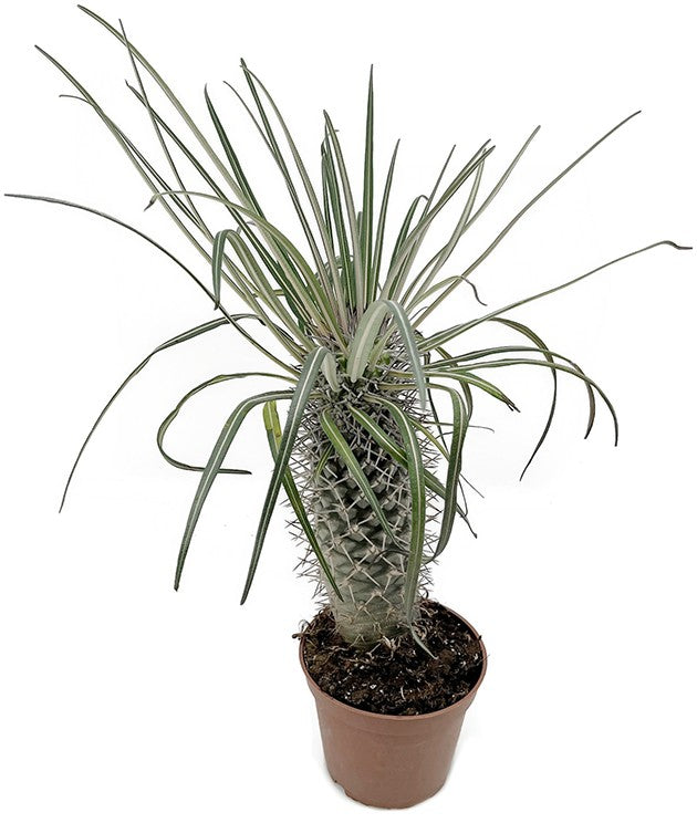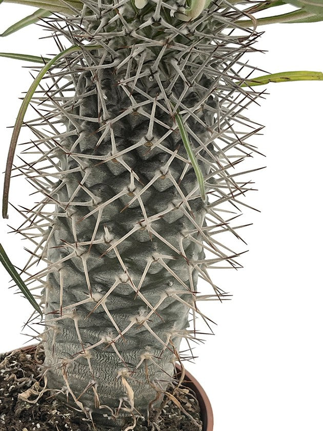 Ihr starker, bedornter Stamm verleiht dieser Sukkulente ein außergewöhnliches Erscheinungsbild. Die langen, schmalen Blätter, die jährlich im Winter abgeworfen werden, unterstreichen ihre Schönheit.
