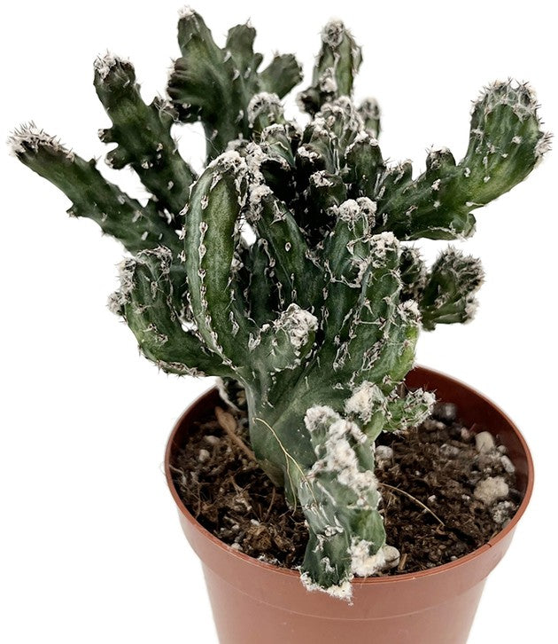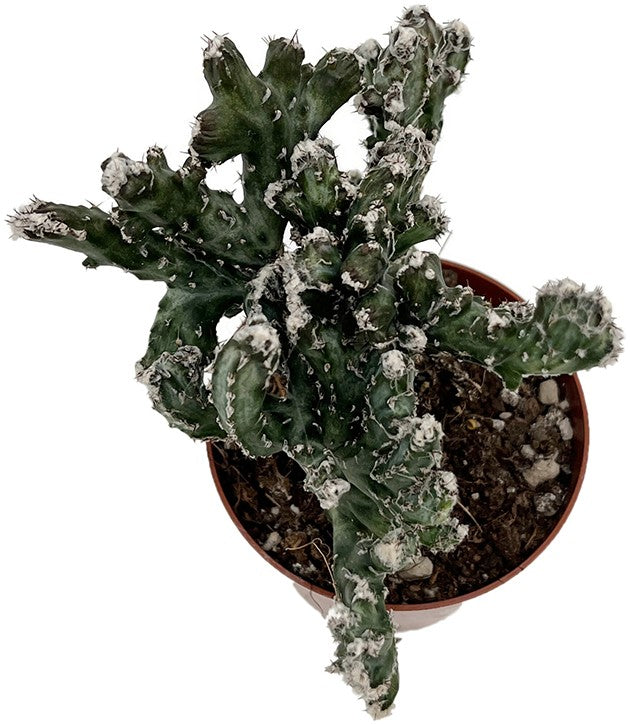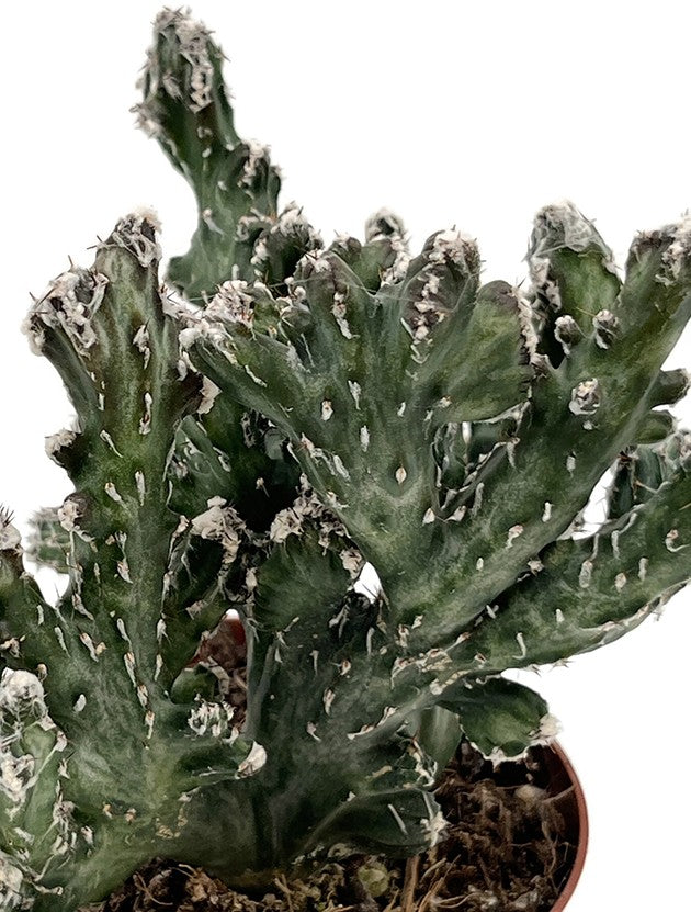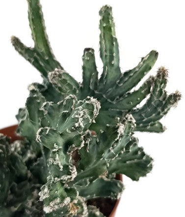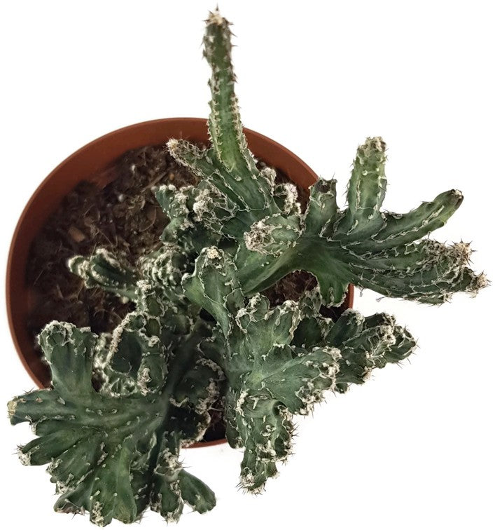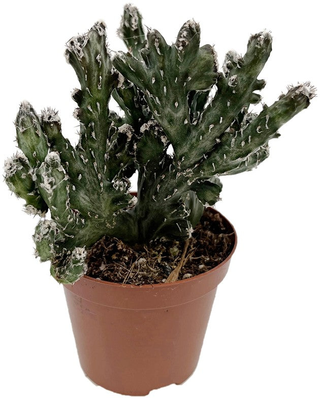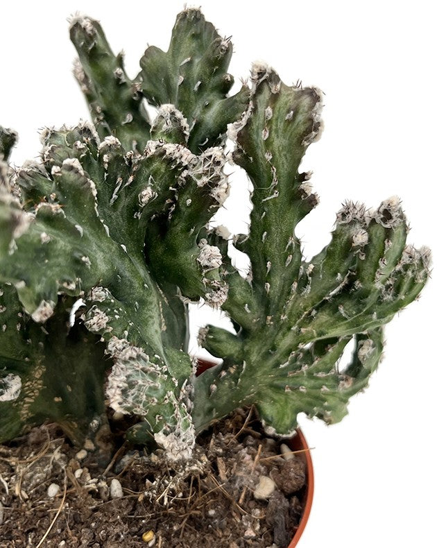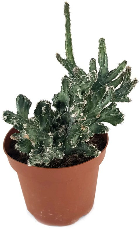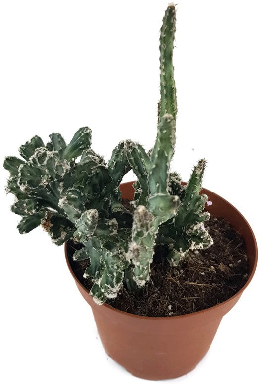 Monvillea spegazzinii f. cristata, auch als "Kamm-Kaktus" bekannt, ist eine äußerst begehrte Sammlerpflanze. Diese außergewöhnliche Sukkulente zeichnet sich durch ihr schnelles und buschiges Wachstum aus. Die schlankeren Wuchsformen dieser Sukkulente präsentieren sich in einer faszinierenden lila-grünen Farbgebung. Dieser exotische Kaktus gehört zweifellos zu den schnell wachsenden Vertretern seiner Art und kann eine beachtliche Höhe von etwa 25 cm erreichen, während er sich nach oben hin verbreitert.
