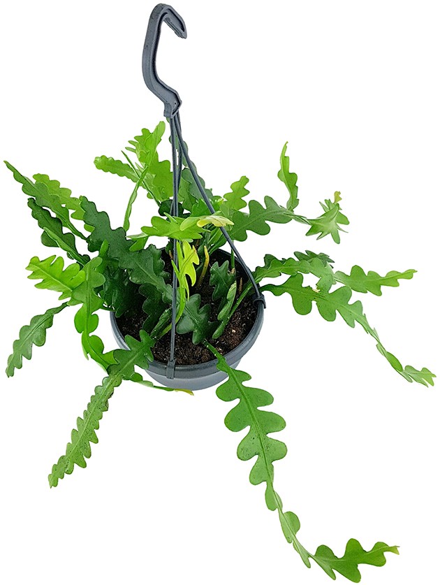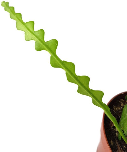 Epiphyllum anguliger, auch bekannt als Zickzackkaktus oder Sägeblattkaktus ist eine atemberaubende Trendpflanze. Dieser dornenlose Kaktus ist eine außergewöhnliche Erscheinung unter den Zimmerpflanzen, die mit seinen wellenförmigen Blättern, die an Fischgräten erinnern, ein optisches Highlight in jedem Raum darstellt.