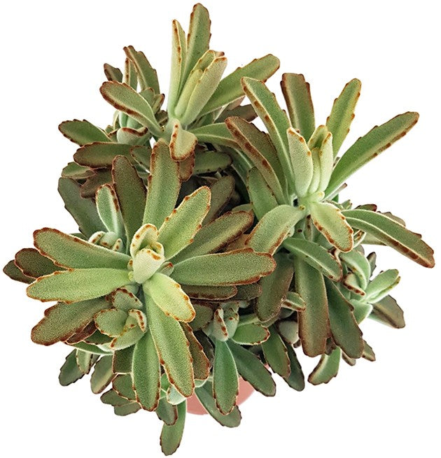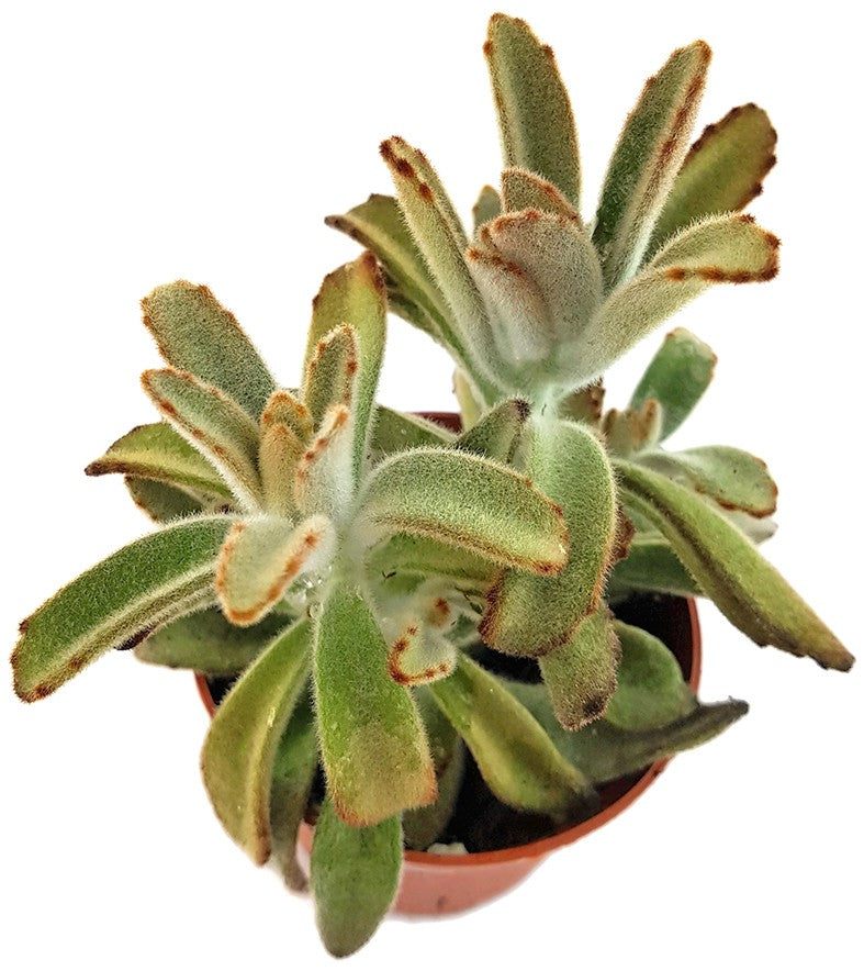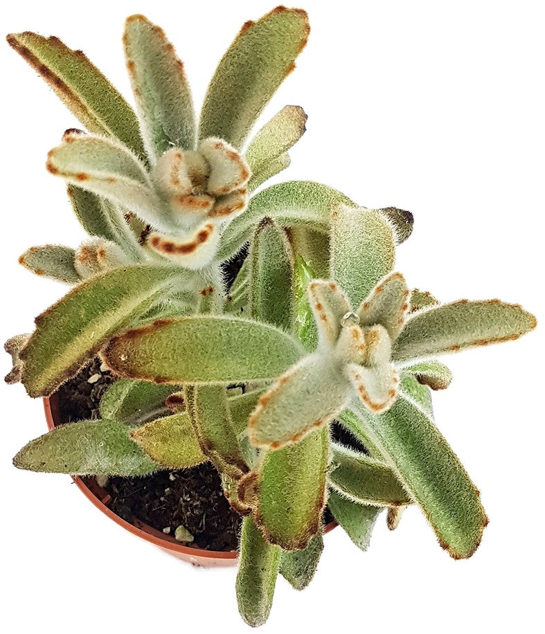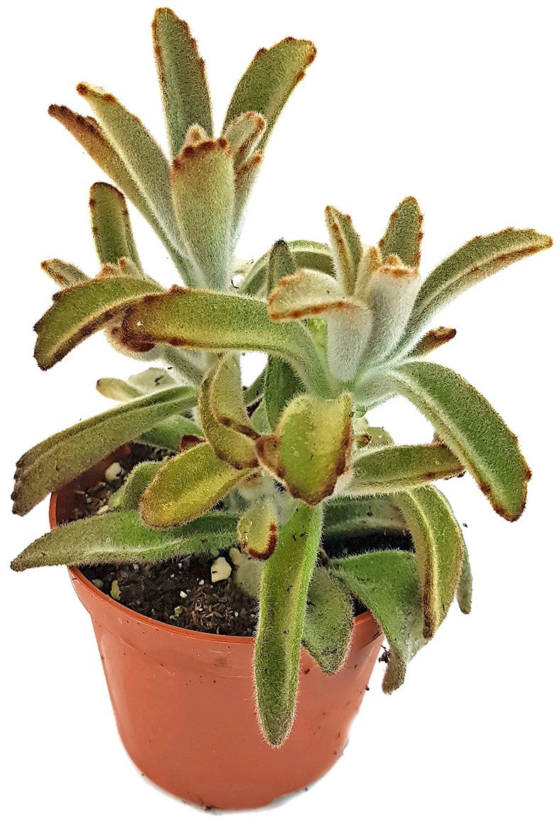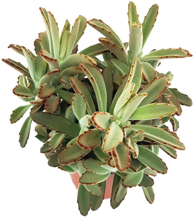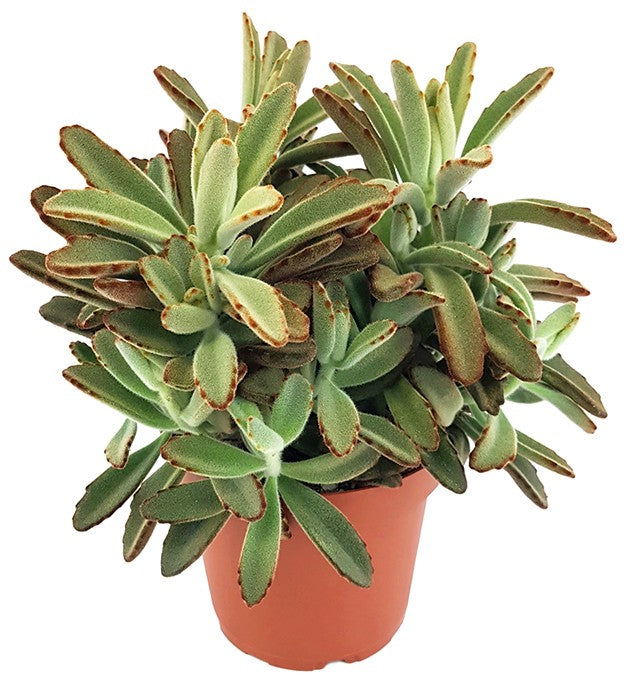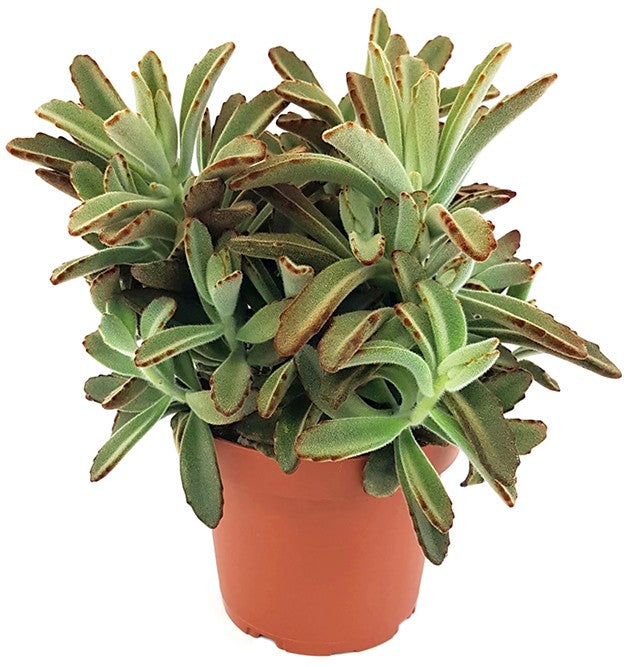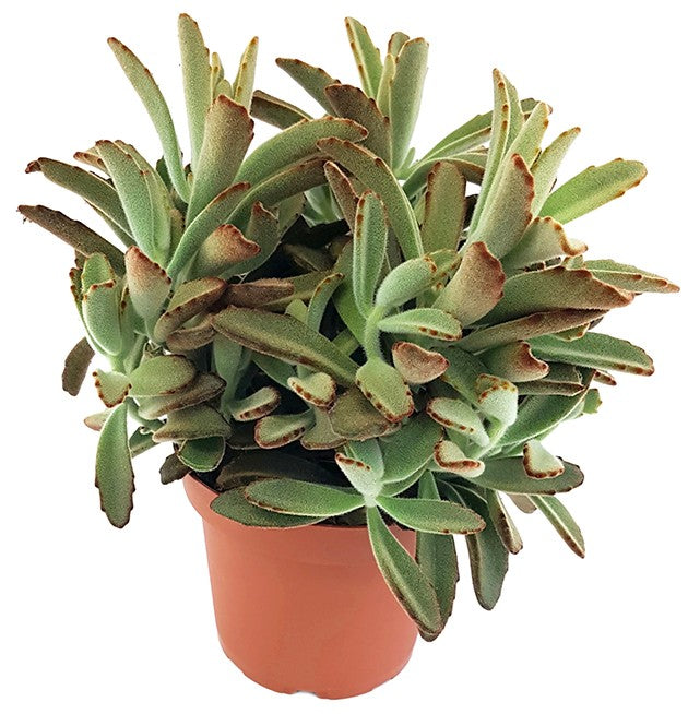 Eine außergewöhnliche Zimmerpflanze für das heimische Fensterbrett ist die Kalanchoe tomentosa. Die exotische Sukkulente wird Sie mit ihren haarigen, weichen Blättern beeindrucken. Wie der Beiname "tomentosa" verrät, sind die Blätter filzig behaart. Die Färbung der dickfleischigen Blätter tut ihr übriges. Silbrig mit brauner Spitze buhlt jedes Blatt um Ihre Aufmerksamkeit.
