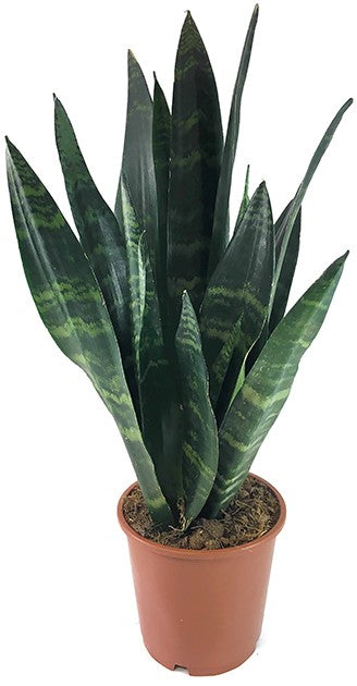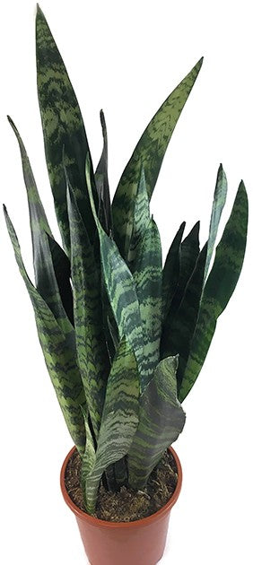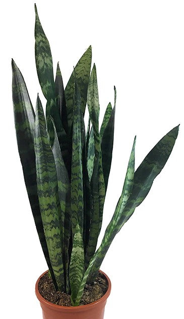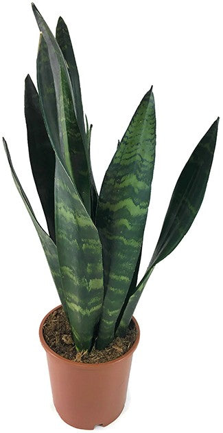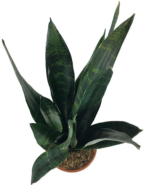 Die Sansevieria trifasciata Black Coral ist die dunkle Schönheit der Bogenhanffamilie. Ihre dunkelgrünen, beinahe schwarzen Blätter werden von hellgemusterten Querstreifen verziert. Die Sansevieria ist und bleibt ein trendiges und lebendiges Dekoelement.