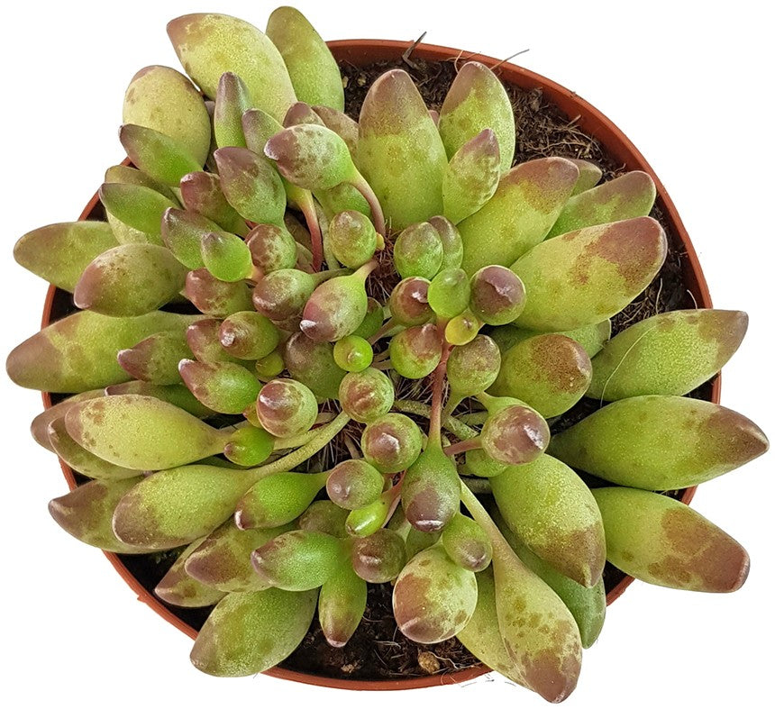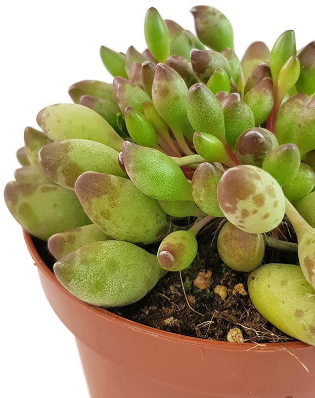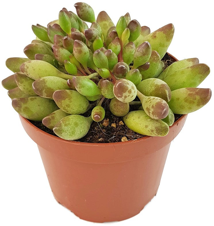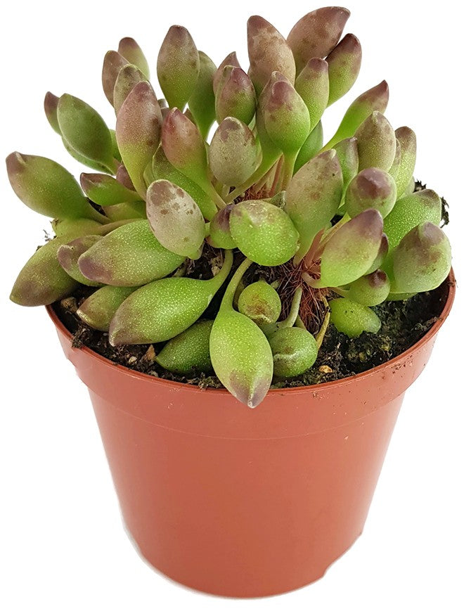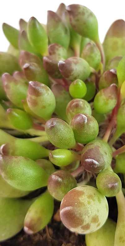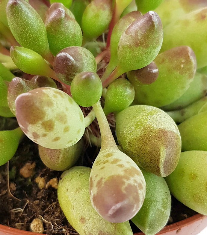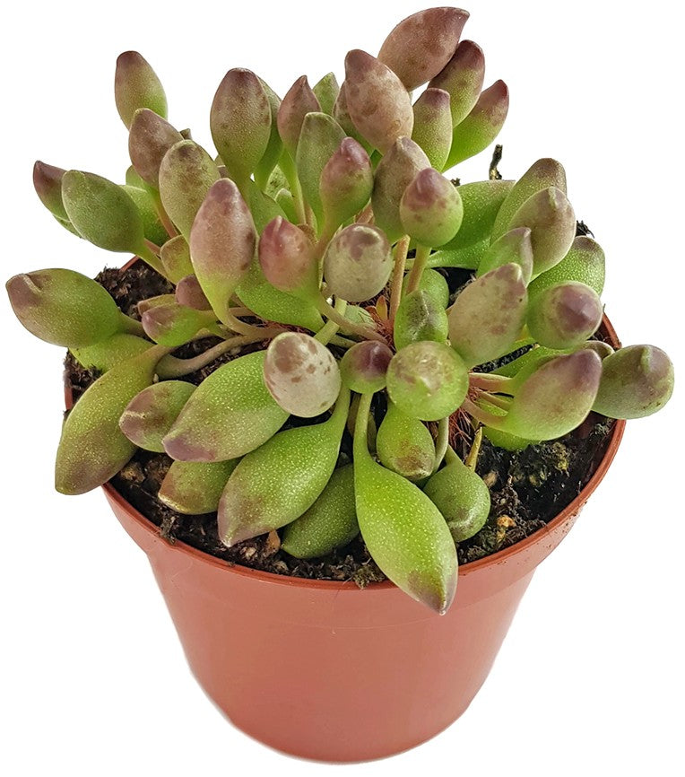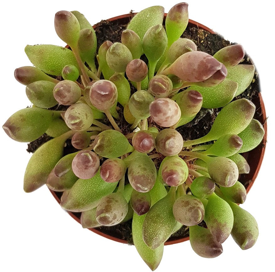 Adromischus Cristatus var. Clavifolius ist eine besondere Art der Crassulagewächse. Diese zwergwüchsige Sukkulente bezaubert Ihre Betrachter mit den ungewöhnlichen kugeligen ovalen Blättern. Diese sind prall wie die Beere einer Traube und verlocken beinahe zum Kosten. Was Sie lieber lassen sollten. Die Pflanze ist nicht zum Verzehr geeignet.