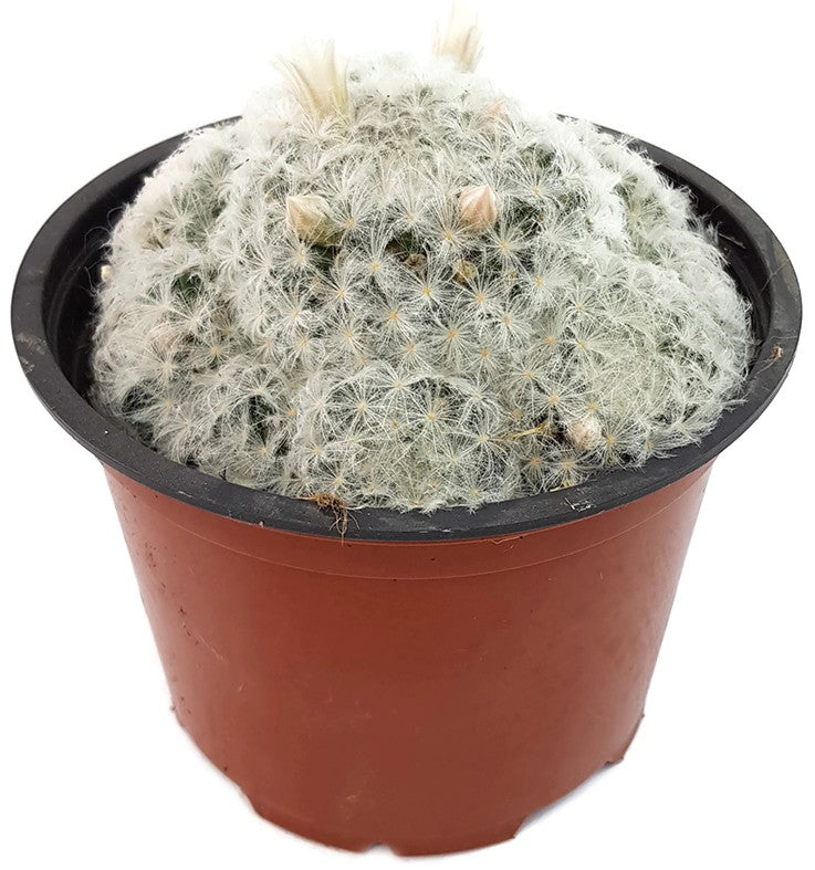 Mammillaria plumosa verblüfft mit ihren sanften, federartigen "Stacheln". In seiner Heimat in Mexiko wächst dieser exotische Kaktus auf Kalksteinfelsen und bildet niedrige Polster aus, welche ca. 40 cm Durchmesser erreichen.