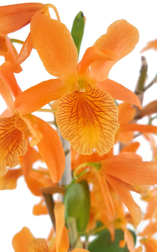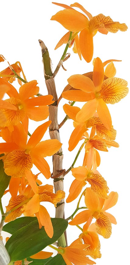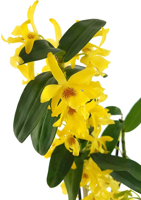 Dendrobium Stardust "chiyomi" ist eine sehr blühstarke Orchidee. Am aufrechten Stängeln bilden sich viele traubenförmig angeordnete Blüten, welche der Orchidee den deutschen Trivialnamen Traubenorchidee gab.