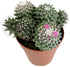 Das Highlight sind die leuchtend pinken Blüten, die die Mammillaria von Juli bis August kreisförmig im oberen Bereich schmücken. Diese strahlenden Farbakzente machen sie zu einem wahren Blickfang und bringen Farbe und Freude in Ihr Zuhause.