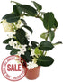 Ähnlich wie der Jasmin oder das Maiglöckchen betören Sie die weißen, trompetenförmigen Blüten mit einem starken Duft. Diesen duftenden Blüten verdankt die imposante Rankpflanze ihre berühmte Bezeichnung Madagaskarjasmin. Die Blüten erscheinen als Dolden in der Zeit von April bis August.