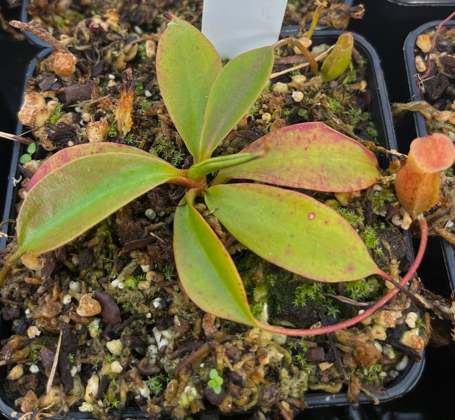 Die Nepenthes mira ist eine exklusive Naturform von Palawan, endemisch in Höhenlagen von 1.500–1.600 Metern auf den Philippinen. Schon ihr Name bedeutet „wunderbar“ – und treffender könnte man diese Art nicht beschreiben. Ihre Kannen zeigen eine elegante Becherform, leuchten in warmem Rot und sind mit dunkelroten Flecken gezeichnet. Dieser Farb- und Formkontrast macht sie zu einem außergewöhnlichen Highlight jeder Sammlung.