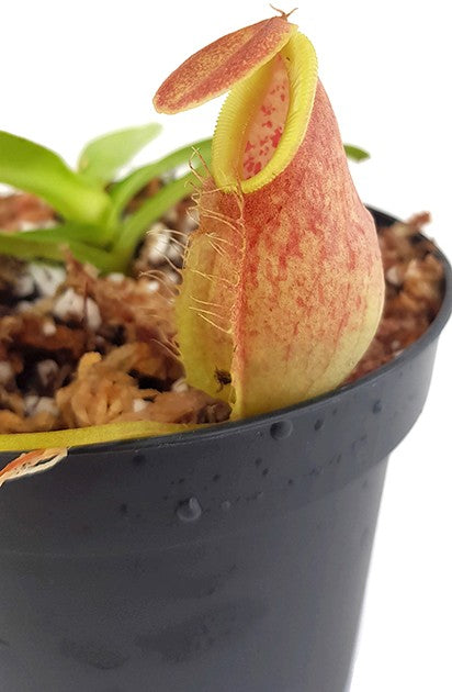 Entdecken Sie die außergewöhnliche Nepenthes spathulata x tenuis, einer herausragenden Schöpfung aus der renommierten Zucht von Borneo Exotics. Die Färbung und Form ihrer Kannen sind schlichtweg atemberaubend und garantierte Blickmagneten.