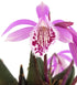 Die Hybride der Pleione humilis zeichnet sich durch ihre besondere dunkel getigerte Lippe aus. Die zarten rosa - violetten Blüten werden Sie verzaubern.