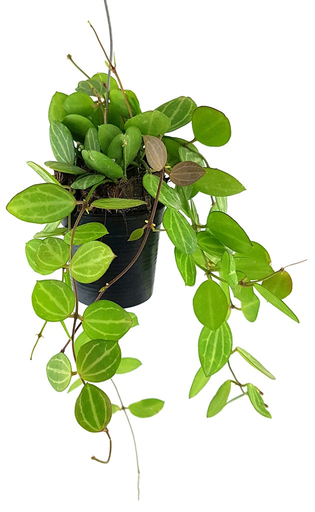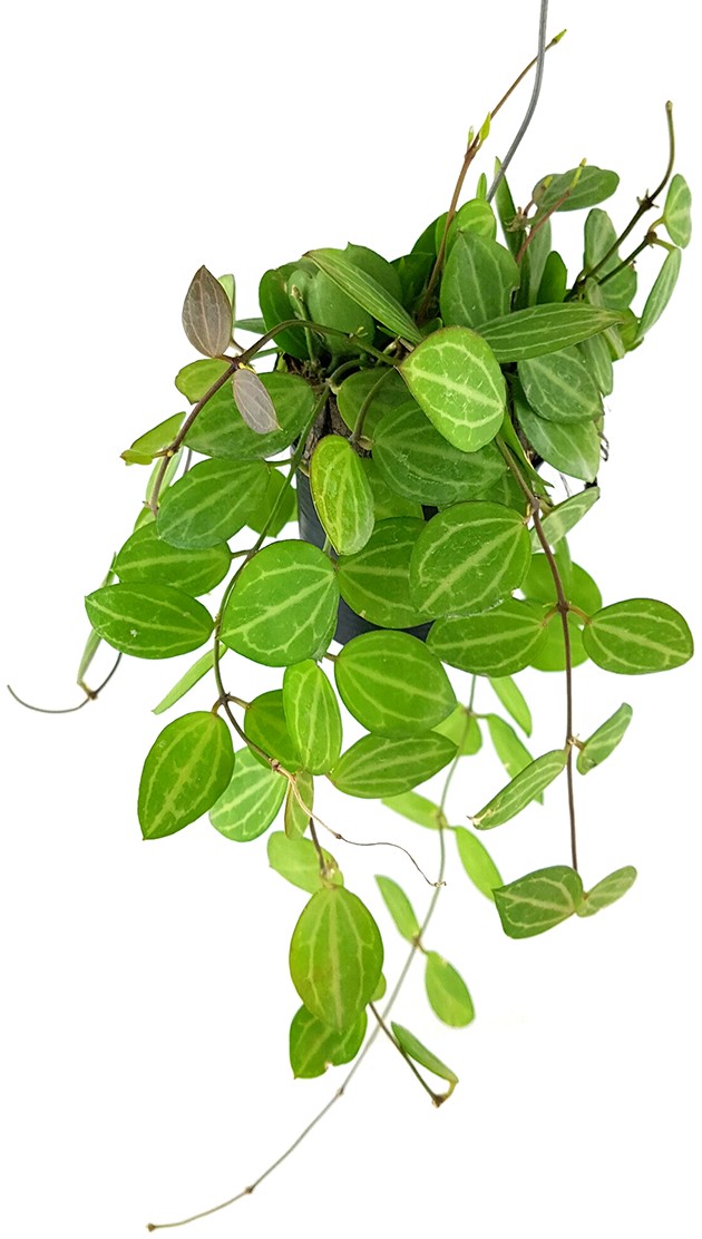 Ein frisches Grün mit weißer Musterung wird Ihr Zuhause sofort aufheitern. Womöglich erinnern Sie die rundlichen Blätter auch an kleine Wassermelonen. So ist ihr Spitzname als Wassermelonen-Dischidia zustande gekommen.