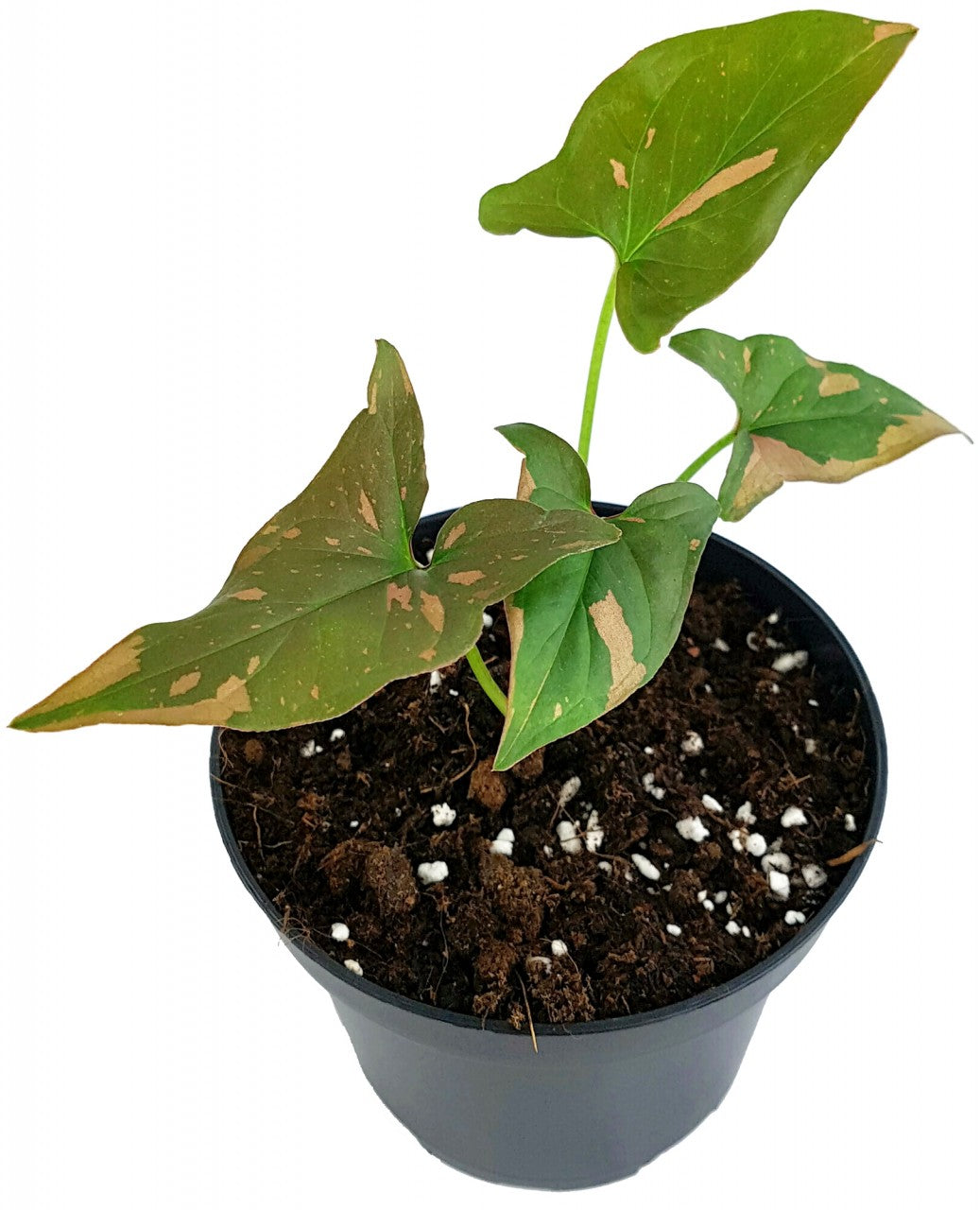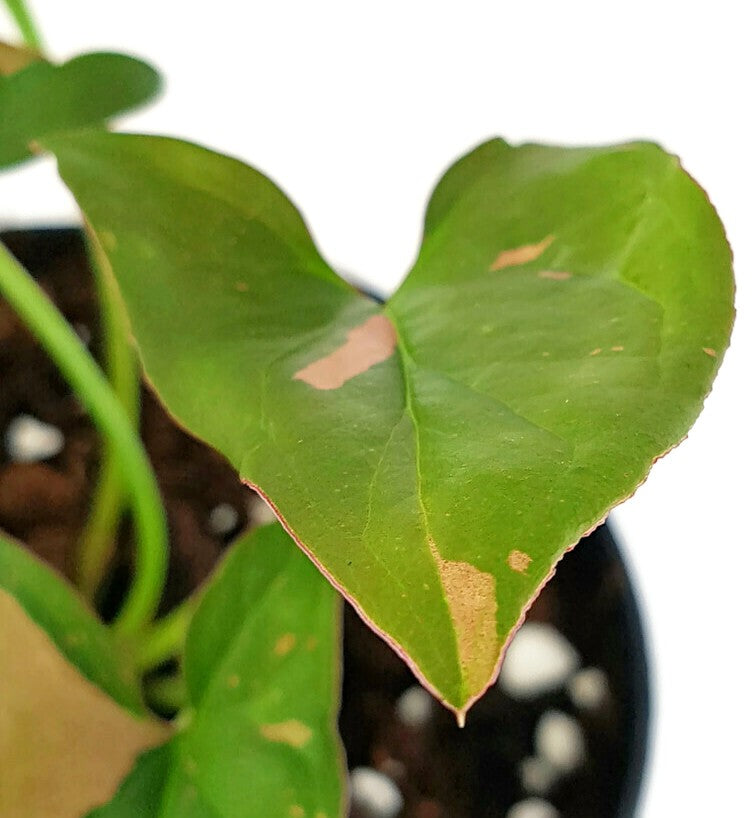 Sicher wollen Sie Ihr neues Pfeilblatt bestmöglich in Ihr Zuhause eingewöhnen. Das können Sie auf verschiedenen Wegen erreichen, weil die Triebe mit der Zeit immer länger werden. So bietet sich eine Rankhilfe an, um die markanten Blätter durch Ihre Vierwände klettern zu lassen. Ebenso dekorativ gibt sich Ihre 'Red Spot'-Rarität in einem Ampeltopf. Aus dem kann das seltene Syngonium seine Blätter durch die Lüfte schweben lassen.