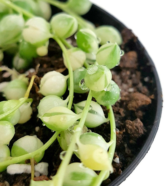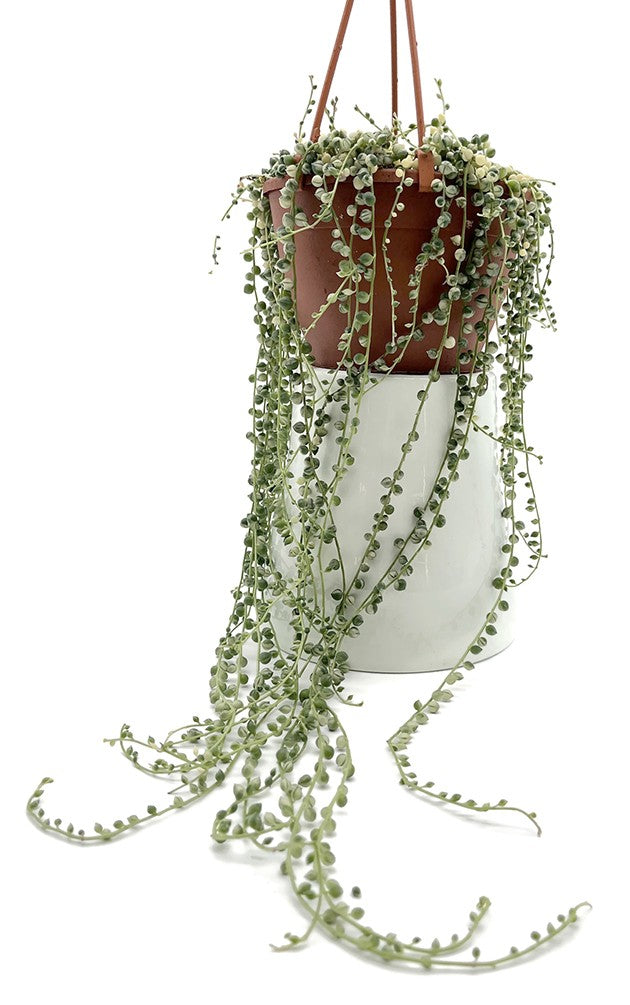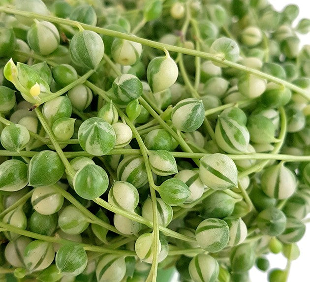 Senecio rowleyanus variegata wird Ihrem Zuhauses einen eleganten Glanz verleihen und Ihre Liebe zu Pflanzen gleich erkennbar machen.