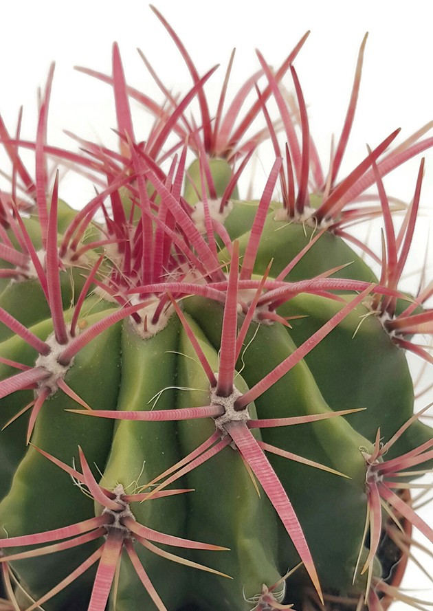 Der Ferocactus stainesii hat das Image der langweiligen Sukkulente längst hinter sich gelassen. Seine zahlreichen, markant gerippten Seiten geben diesem lebenden Kunstwerk eine erstklassige Struktur, während der ausdauernde Wuchs aus dem anfänglich kugelförmigen Pflanzenkörper mit den Jahren eine zylindrische Wuchsform formt, die seine Erhabenheit noch unterstreicht.