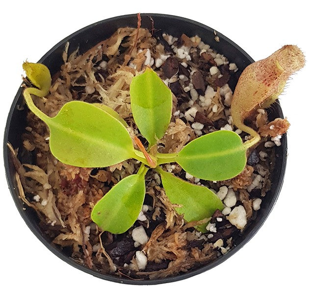 Die weibliche Elternpflanze, Nepenthes burbidgeae, ist bekannt für ihre cremefarbenen Kannen, die durch ihre elegante Schlichtheit faszinieren. Die männliche Elternpflanze, Nepenthes robcantleyi, trägt den kultivierten Namen 'King of Spades' und ist für ihre tiefschwarzen, imposanten Kannen berühmt, die dieser Hybride eine unvergleichliche Präsenz verleihen.