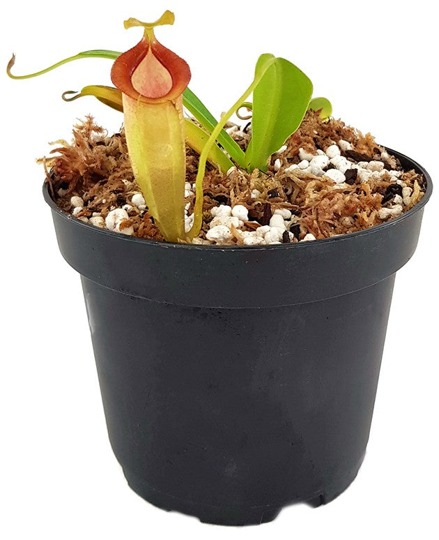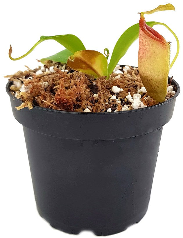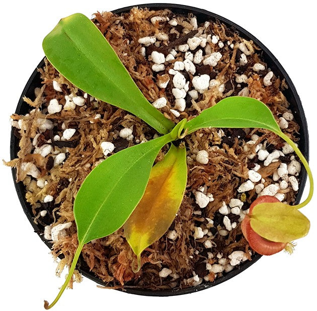 Diese extravagante Kannenpflanze mag eine Umgebung mit erhöhter Luftfeuchtigkeit, dies erreichen Sie ganz leicht indem Sie die Nepenthes von Zeit zu Zeit mit Wasser aus einer Sprühflasche benebeln.