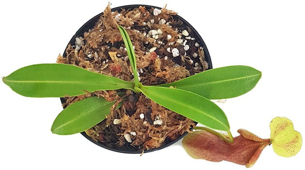 Wir versenden die Kannenpflanze ohne Verdauungssekret in den Kannen. Sie können die Kannen bei Erhalt bis zu einem Drittel mit Regenwasser auffüllen.