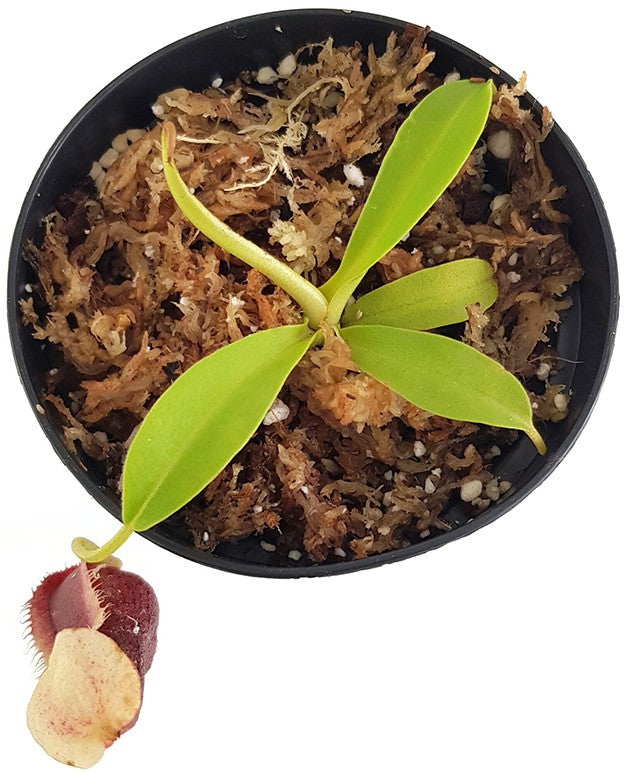 Der weibliche Elternteil ist ein ausgewählter Klon von Nepenthes spathulata (BE-3175) und der männliche Elternteil ist die Belirang-Form von Nepenthes singalana, ausgewählt aus den verschiedenen Klonen (BE-3170).