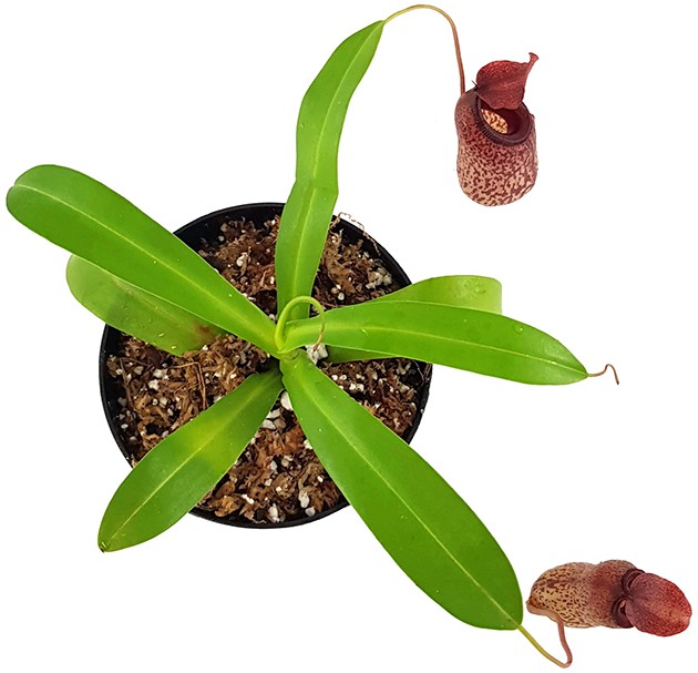 Wir versenden die Kannenpflanze ohne Verdauungssekret in den Kannen. Sie können die Kannen bei Erhalt bis zu einem Drittel mit Regenwasser auffüllen.