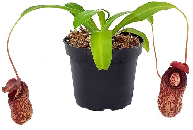 Diese extravagante Kannenpflanze mag eine Umgebung mit erhöhter Luftfeuchtigkeit, dies erreichen Sie ganz leicht indem Sie die Nepenthes von Zeit zu Zeit mit Wasser aus einer Sprühflasche benebeln.