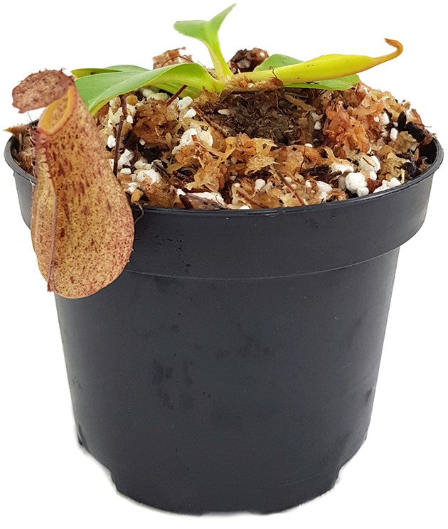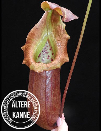 Wir versenden die Kannenpflanze ohne Verdauungssekret in den Kannen. Sie können die Kannen bei Erhalt bis zu einem Drittel mit Regenwasser auffüllen.