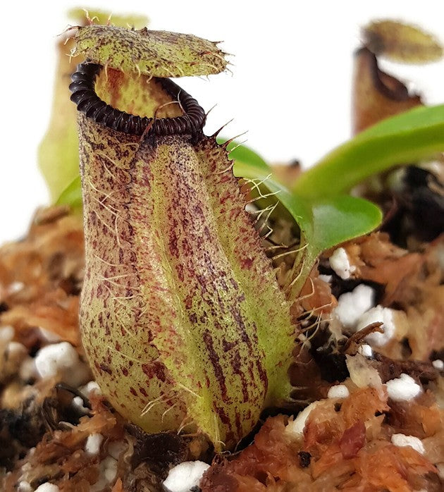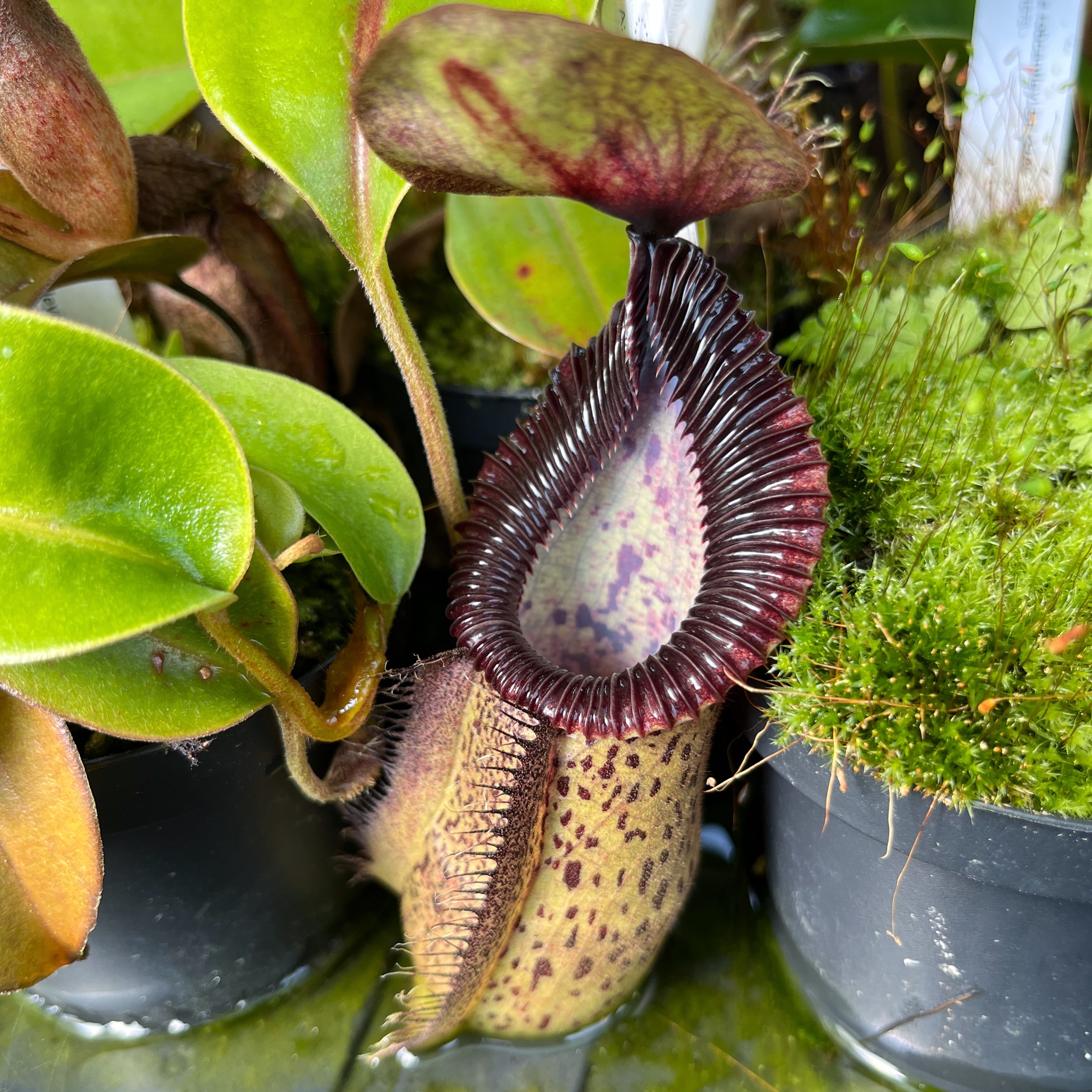 Nepenthes hamata x robcantleyi überzeugt mit ihrem natürlichen Aussehen und ist eine besondere Hybride, die exklusiv bei Borneo Exotics entstanden ist. Diese beeindruckende Kannenpflanze wurde erstmals im Januar 2017 durch Samen in die Kultivierung eingeführt und stammt aus einer zufälligen Auswahl einer großen Anzahl verschiedener Klone.