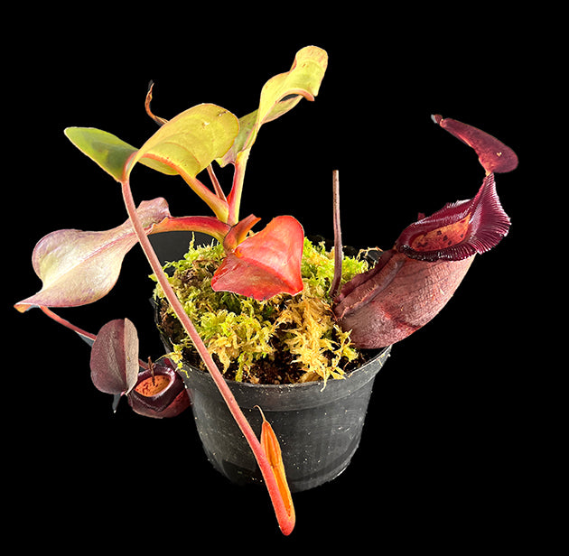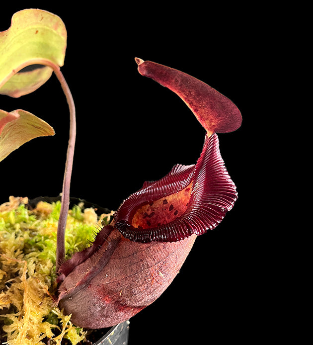 Die Mutterpflanze dieser Hybride ist einer der vier Klone der Nepenthes rajah, eine wertvolle in-vitro Spende der Royal Botanic Gardens. Diese majestätische Pflanze ist bekannt für ihre riesigen, beeindruckenden Kannen. Der männliche Anteil stammt von der legendären Nepenthes robcantleyi 'King of Spades', die für ihre riesigen schwarzen Kannen berühmt ist. Die Kannen dieser außergewöhnlichen Hybride sind rötlich gefärbt und besitzen ein intensiv rotes Peristom, das ihnen eine elegante und harmonische Form verleiht. Sie sind nicht nur ein visuelles Highlight, sondern auch ein wahrer Pluspunkt für jede Nepenthes-Sammlung.