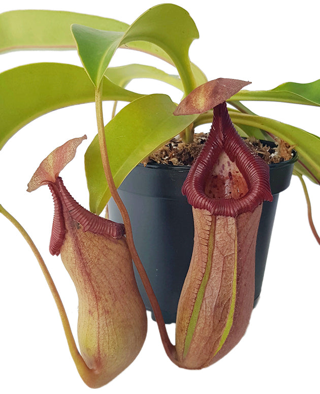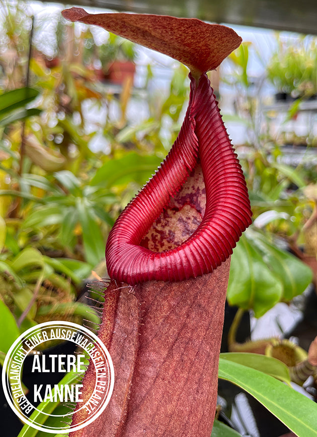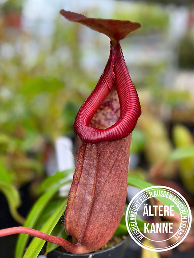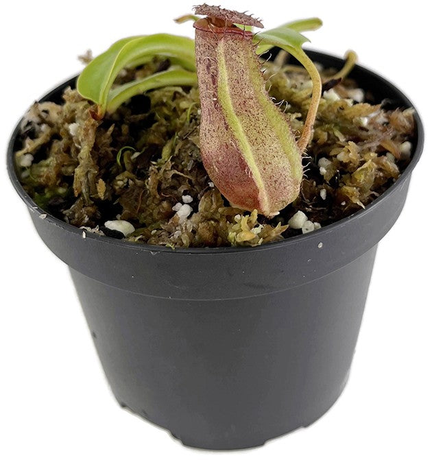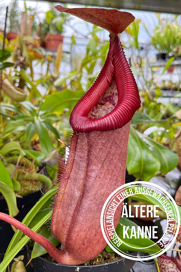 Das hier gezeigte Exemplar repräsentiert die Schönheit und Einzigartigkeit dieser speziellen Hybride. Jede Nepenthes wurde sorgfältig ausgewählt, um sicherzustellen, dass Sie ein hochwertiges Exemplar erhalten.