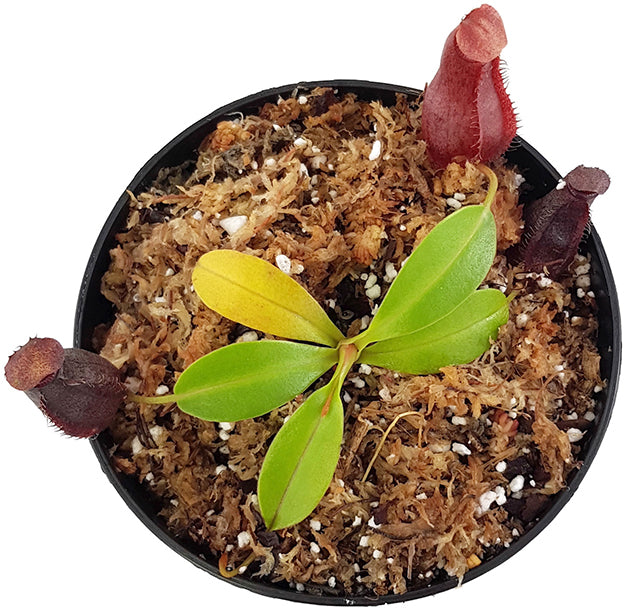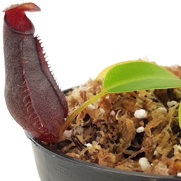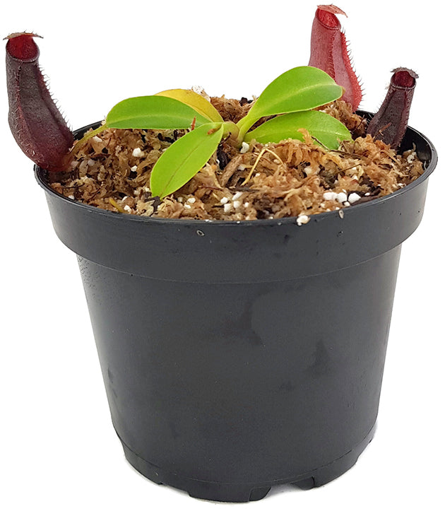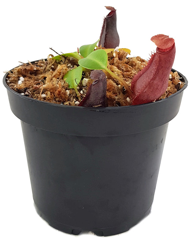 Als Hochlandpflanze bevorzugt diese Hybride kühle Nächte und moderate Tagestemperaturen. Eine Luftfeuchtigkeit von 60–80 % unterstützt die Kannenbildung und sorgt für ein optimales Wachstum. Diese Pflanze ist ein echter Hingucker – ihre dunklen, imposanten Kannen und die elegante Wuchsform machen sie zu einem unverzichtbaren Highlight für jeden erfahrenen Nepenthes-Liebhaber.