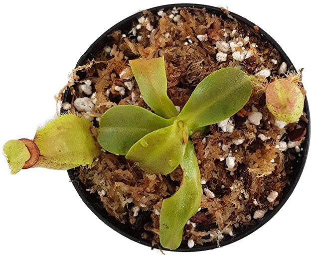 Nepenthes spathulata x ampullaria ist eine sehr interessante Hybride, die in einer weiten Temperaturspanne gedeihen kann.