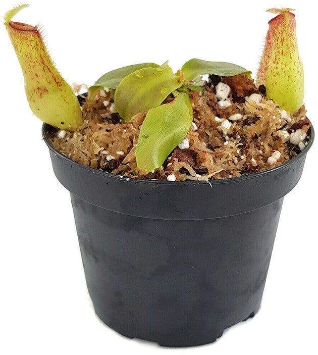 Eine samengezogene Nepenthes spathulata und der Klon "Brunei Red" der Nepenthes ampullaria sind die Elternpflanzen dieser Kreuzung. Spannend ist, dass es sich um eine Kreuzung aus Hochland- und Tieflandpflanze handelt. Das ist der Grund für die hohe Verträglichkeit verschiedener Temperaturen. Der starke Wuchs und die ansonsten pflegeleichte Art dieser Kannenpflanze lassen sie sehr attraktiv für Anfänger und Nepenthessammler erscheinen.