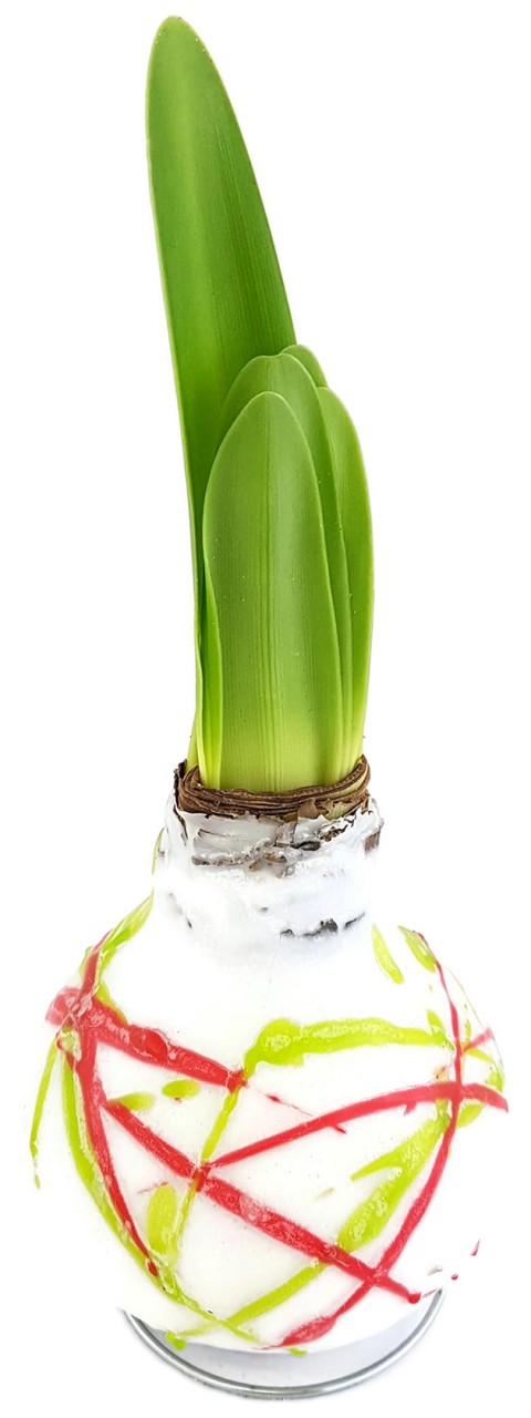 Ein natürliches, kunstvolles Wohnaccessoire mit vielen Einsatzmöglichkeiten. Die Amaryllis ‚Picasso‘ vollendet Ihre winterlichen Dekoration mit ihrer außergewöhnlichen Wachsbemalung. Die verschlungenen farbigen Linien vereinen sich stimmig mit der Grundfarbe und lassen beim bloßem Ansehen Freude aufkommen. Zusätzlich bringt die Blumenzwiebel in den kommenden Wochen ihre charakteristische Blüte hervor, welche Ihnen zusätzlich ein Lächeln in Ihr Gesicht zaubert.