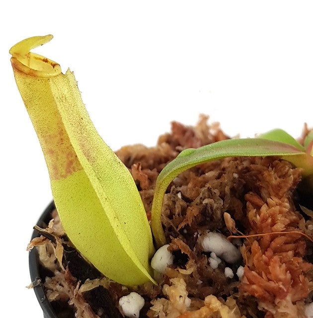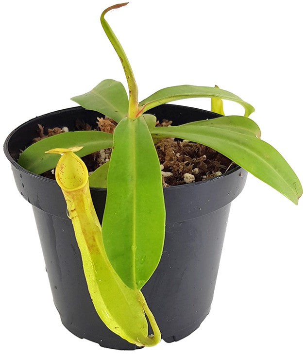 Nepenthes reinwardtiana ziert sich mit wunderschönen schlanken Kannen. Sobald diese ausgewachsen sind, erscheinen darauf charakteristische Augen-Flecken auf der Innenseite der Kannen. Erweitern Sie Ihre Nepenthes-Sammlung um dieses tolle Exemplar und bringen Sie einen frischen Farbkontrast hinein. Alle Klone dieser speziellen Sorte weisen eine typische, gleichmäßig grüne Färbung auf, die auf den ersten Blick für Freude sorgt. Zudem gibt sich Nepenthes reinwardtiana pflegeleicht und belohnt Züchter mit ihrem zuverlässigen Wachstum.