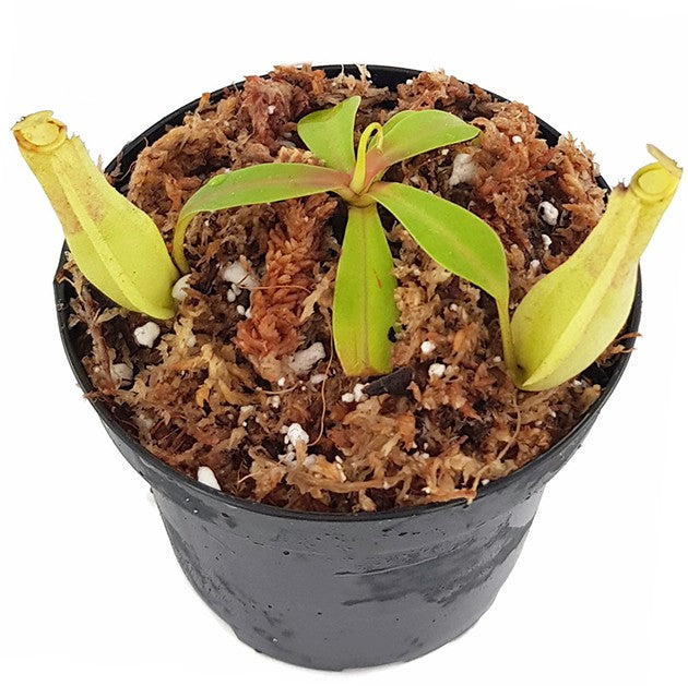 Wir versenden die Kannenpflanze ohne Verdauungssekret in den Kannen. Sie können die Kannen bei Erhalt bis zu einem Drittel mit Regenwasser auffüllen.