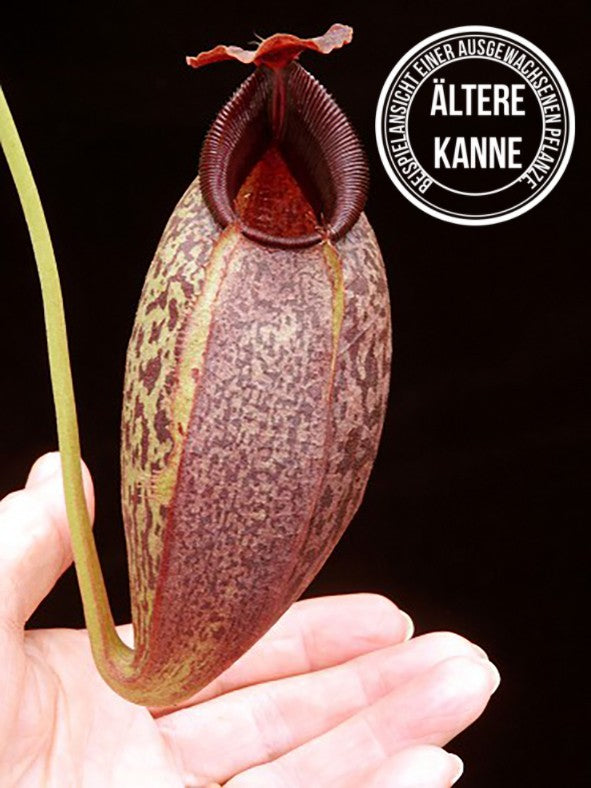 Die Nepenthes-Hybride liebt einen hellen, aber vor direkter Sonneneinstrahlung geschützten Standort. Sie eignet sich hervorragend für die Kultivierung in Ampeltöpfen oder hängenden Körben, wo ihre Kannen elegant herabhängen können. Unter optimalen Bedingungen kann diese Kannenpflanze mehrere Meter hoch klettern, was sie zu einem beeindruckenden Blickfang in jeder Sammlung macht. Aufgrund ihrer Hochland-Abstammung ist die Pflanze nicht winterhart und sollte in der kalten Jahreszeit an einem hellen, kühlen Standort in der Wohnung überwintert werden.