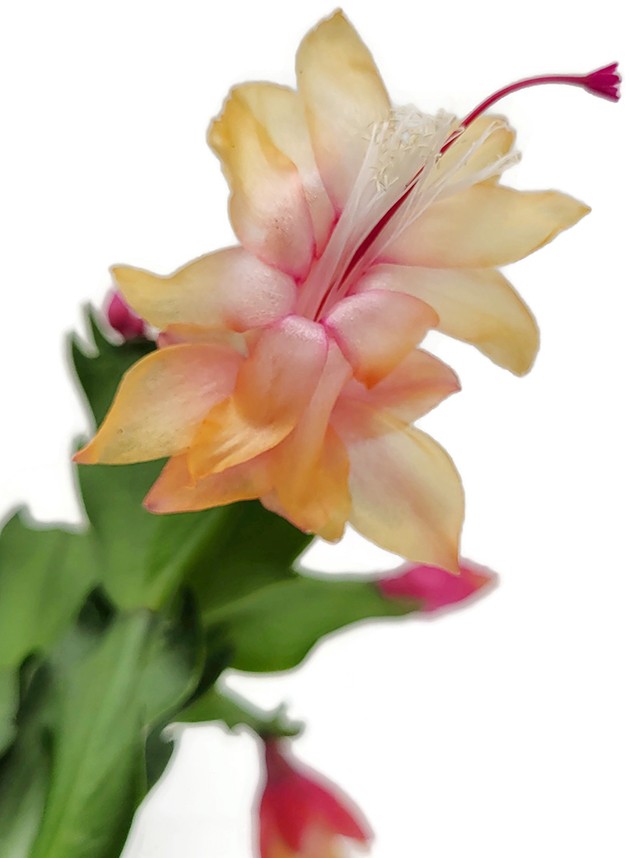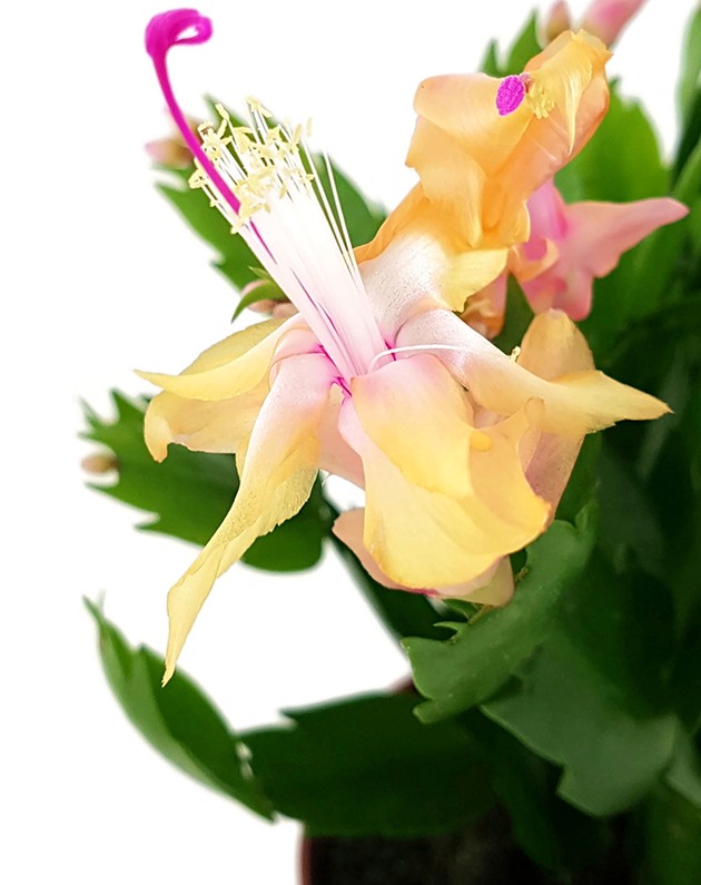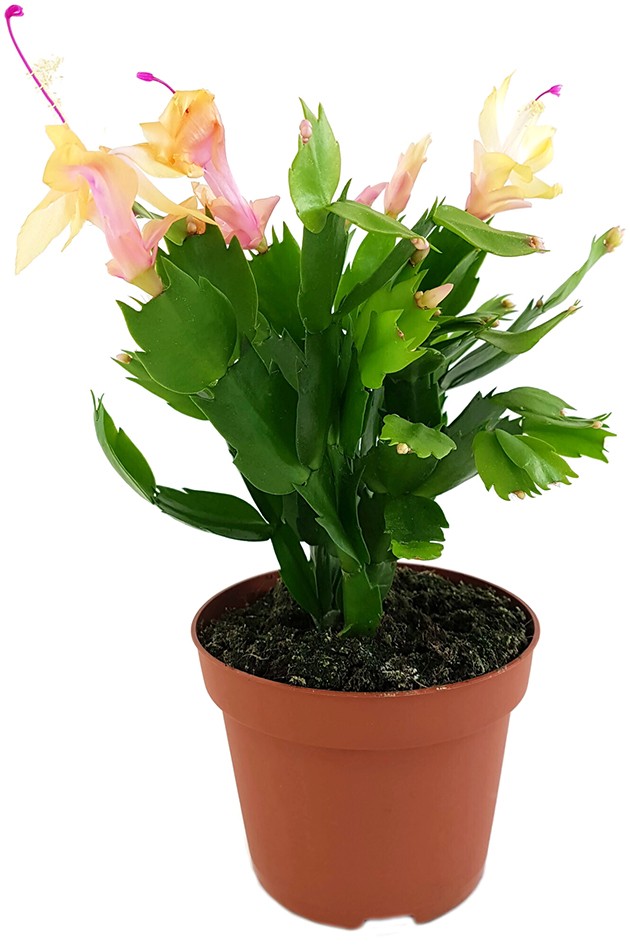 Verleihen Sie Ihrem Zuhause mit einem Feuerwerk von apricotfarbenen Blüten, die zart in verschiedene Farbtöne übergehen, eine frische und lebendige Atmosphäre für Ihr Zuhause. Unser Schlumbergera Kaktus, auch Weihnachtskaktus genannt, ist nicht nur ein Blickfang, sondern auch äußerst pflegeleicht und wird Ihr Zuhause mit einem Blütenmeer erfreuen.