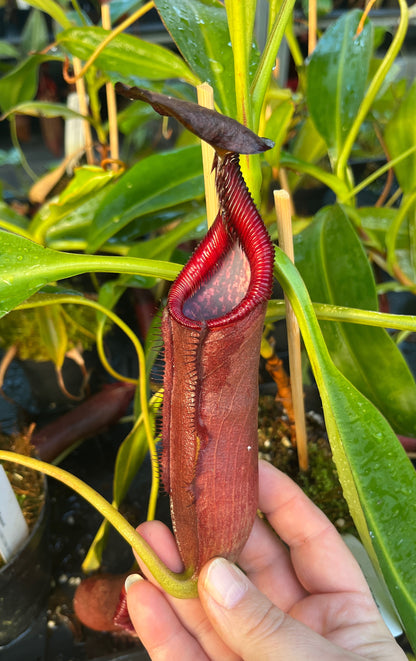Von dieser Kannenpflanzen-Hybride werden zähe Kannen erwartet, die sich lang halten und Nektar unter dem Deckel produzieren. Dabei ist bereits zu erkennen, dass die unteren Kannen reich an Farben sind. Die oberen Kannen sind noch eine Überraschung, sollten jedoch sehr faszinierend aussehen und das eigentliche Highlight dieser Kreuzung werden. Die Spannung bleibt, bis Sie die ersten Hochkannen bei sich zu Hause als erster bewundern können.