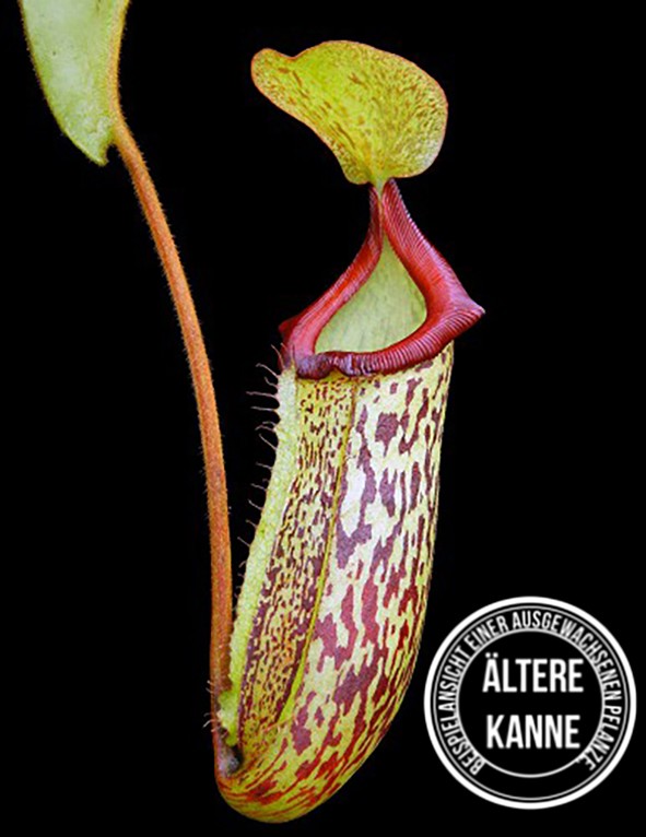 Wir versenden die Kannenpflanze ohne Verdauungssekret in den Kannen. Sie können die Kannen bei Erhalt bis zu einem Drittel mit Regenwasser auffüllen. Eine Lieferung der Nepenthes mit ausgebildeten Kannen kann nicht garantiert werden.