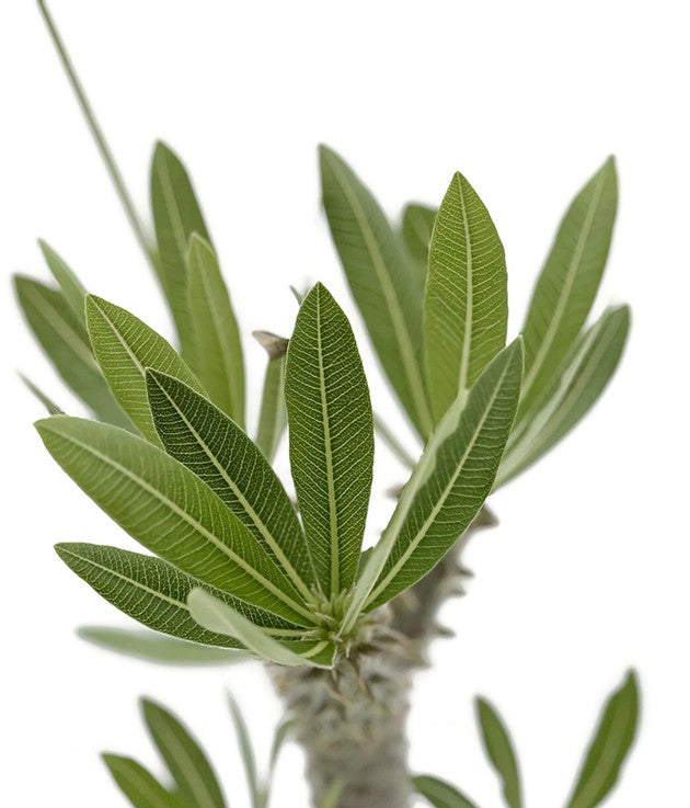 Beobachten Sie über die Jahre ein wahres Naturschauspiel direkt in Ihrem Wohnzimmer. Neben den jährlich neu wachsenden Blättern können Sie zusehen, wie der Caudex Ihres Pachypodium horombense immer dicker wird und zu einer unverwechselbaren Skulptur heranwächst.
