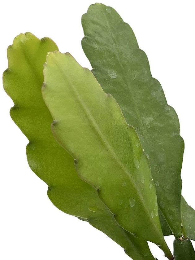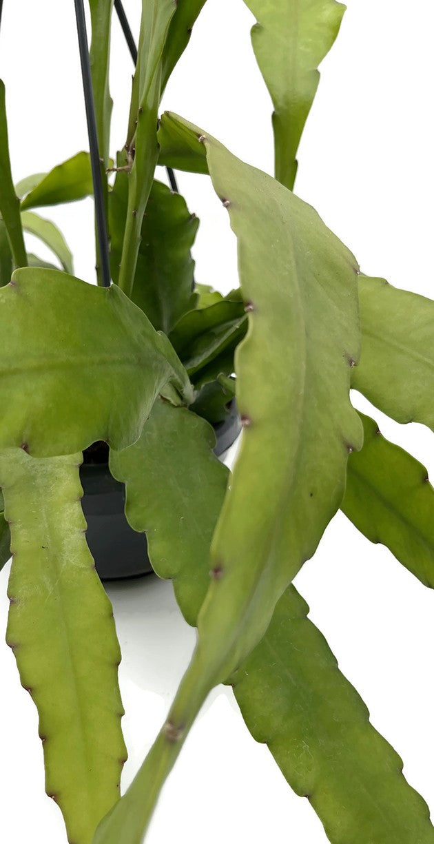 Die Blätter des Blattkaktus wachsen in alle Richtungen, welche zwischen aufrecht und hängend möglich sind. Noch dazu sind sie saftig grün gefärbt und besitzen eine ledrige Oberfläche.