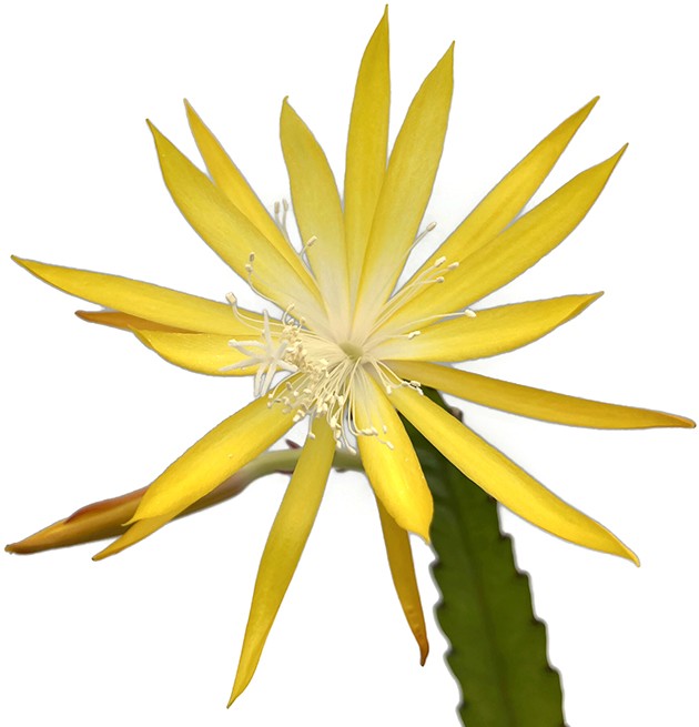 Epiphyllum "Frühlingsgold" zieht die Blicke magisch auf sich, weil der außergewöhnliche Blattkaktus extravagante, fruchtig duftende gelbe Blüten hervorbringt und zusätzlich mit seiner stattlichen Größe ein wahrer Eyecatcher ist.