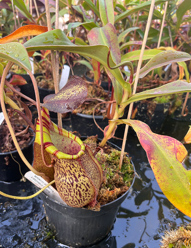 Diese Showpiece der Nepenthes spathulata x spectabilis ist eine beeindruckende Hochlandhybride mit außergewöhnlicher Präsenz. In dieser groß gewachsenen Ausführung zeigt sie bereits eindrucksvoll, welches Potenzial in dieser legendären Verpaarung steckt. Kräftiger Wuchs, stabile Blattstruktur und markante Kannen machen sie zu einem dominanten Mittelpunkt jeder anspruchsvollen Nepenthes-Sammlung.