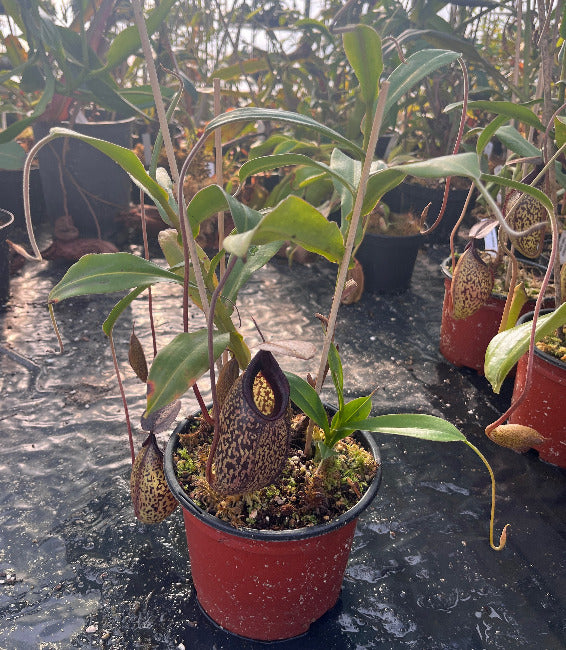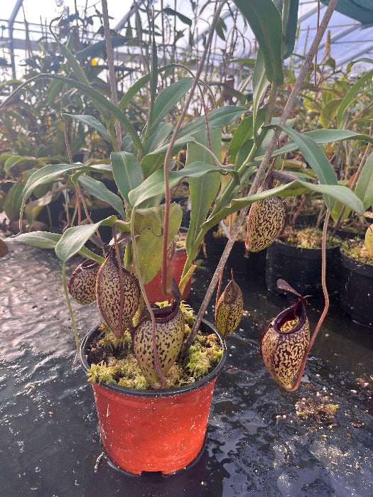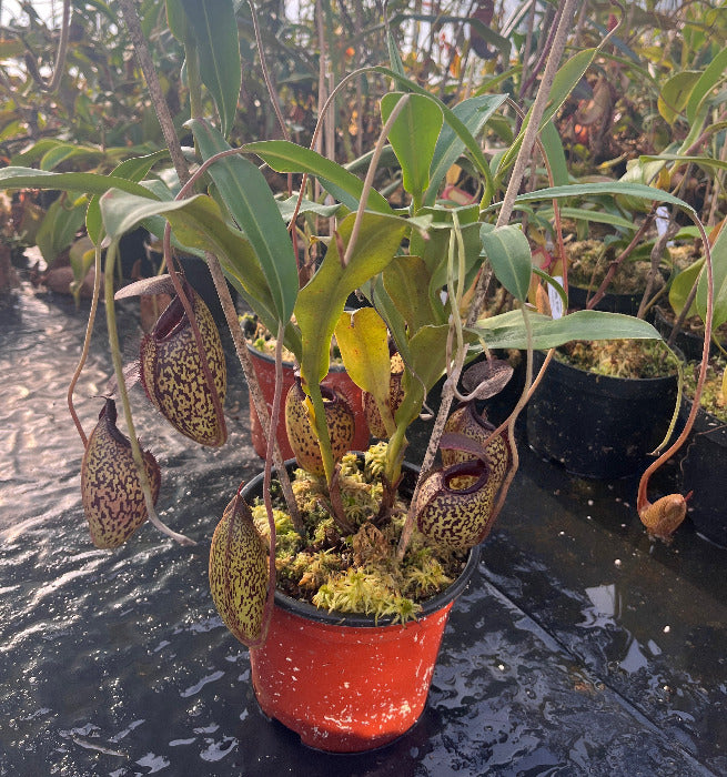 Diese Showpiece Nepenthes spectabilis x aristolochioides vereint Größe, Struktur und außergewöhnliche Zeichnung in einer beeindruckenden Hochlandhybride. Bereits in dieser kräftigen Dimension zeigt die Pflanze, welches Potenzial in ihr steckt – massive, perfekt ausgeformte Kannen mit markanter Ausstrahlung machen sie zu einem beeindruckenden Mittelpunkt jeder Sammlung.